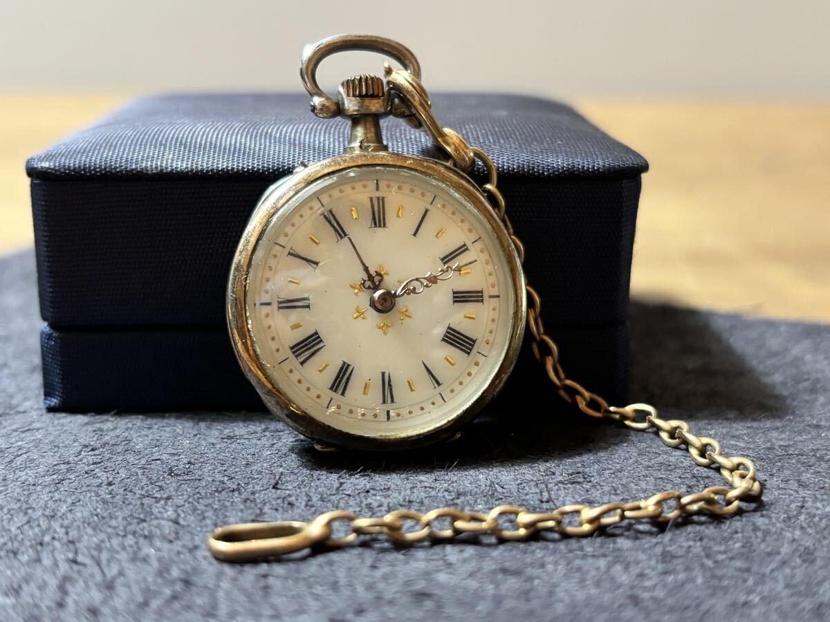 ・アンティーク懐中時計本体(銀×金装飾)