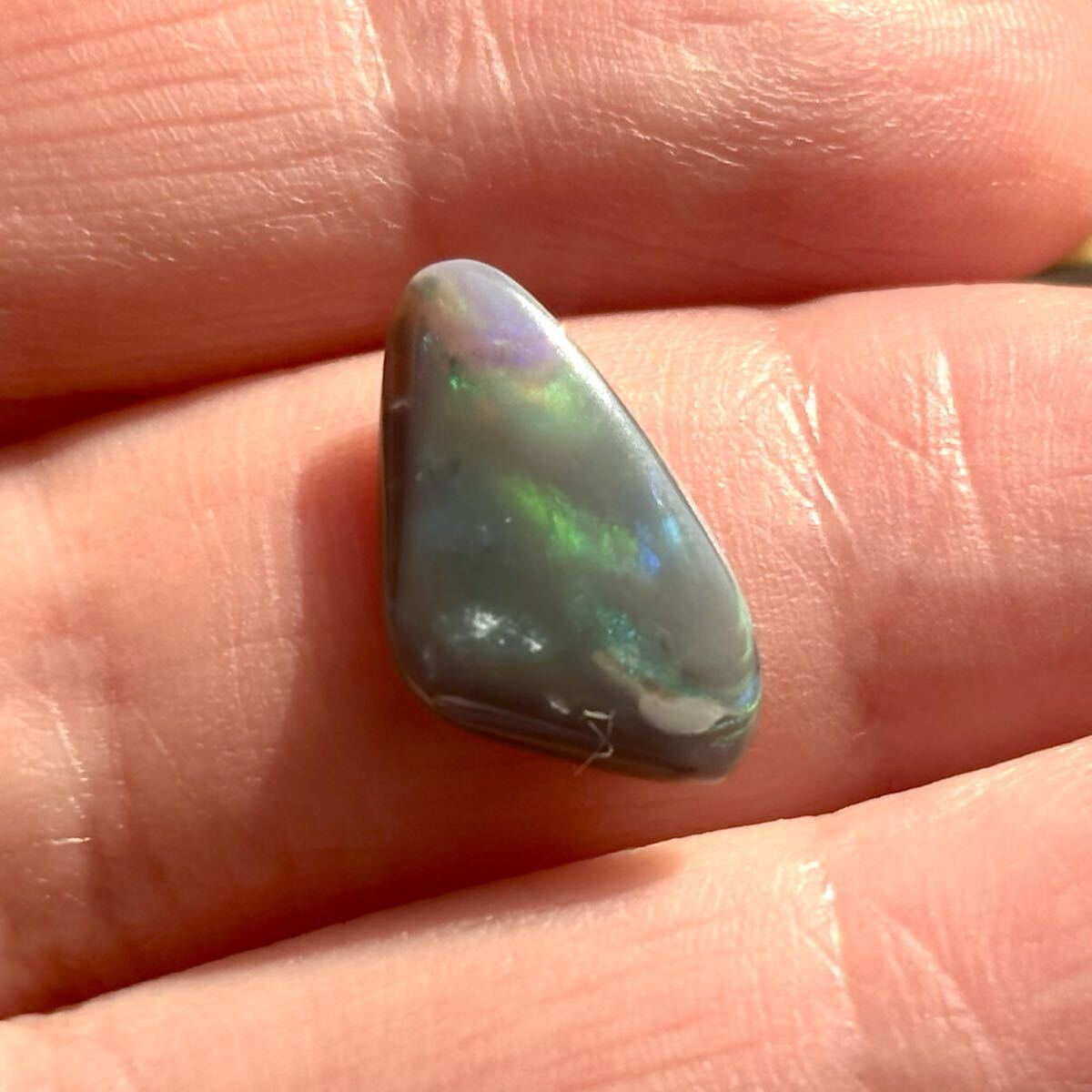 オパール豆知識1 オパールの色で価値の高い順に赤、オレンジ、黄色、緑、青、紫、です。このオパールは赤の遊色が楽しめるオパールです