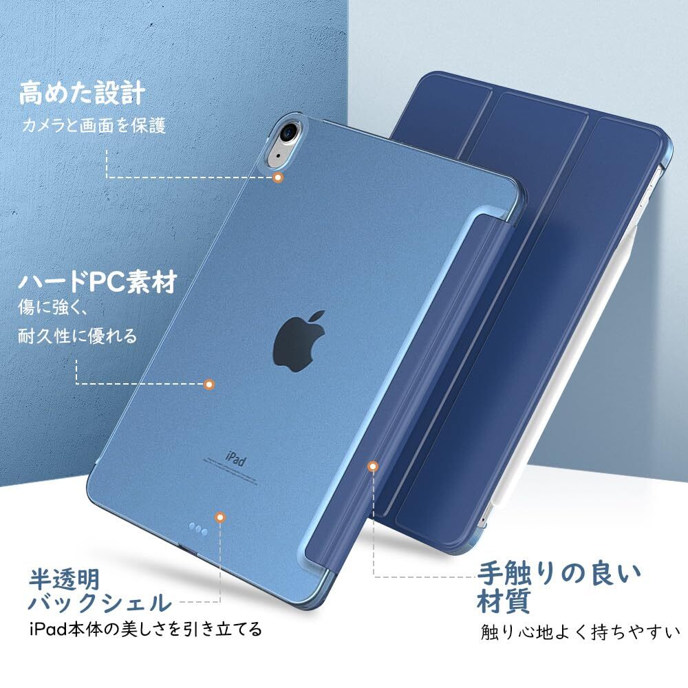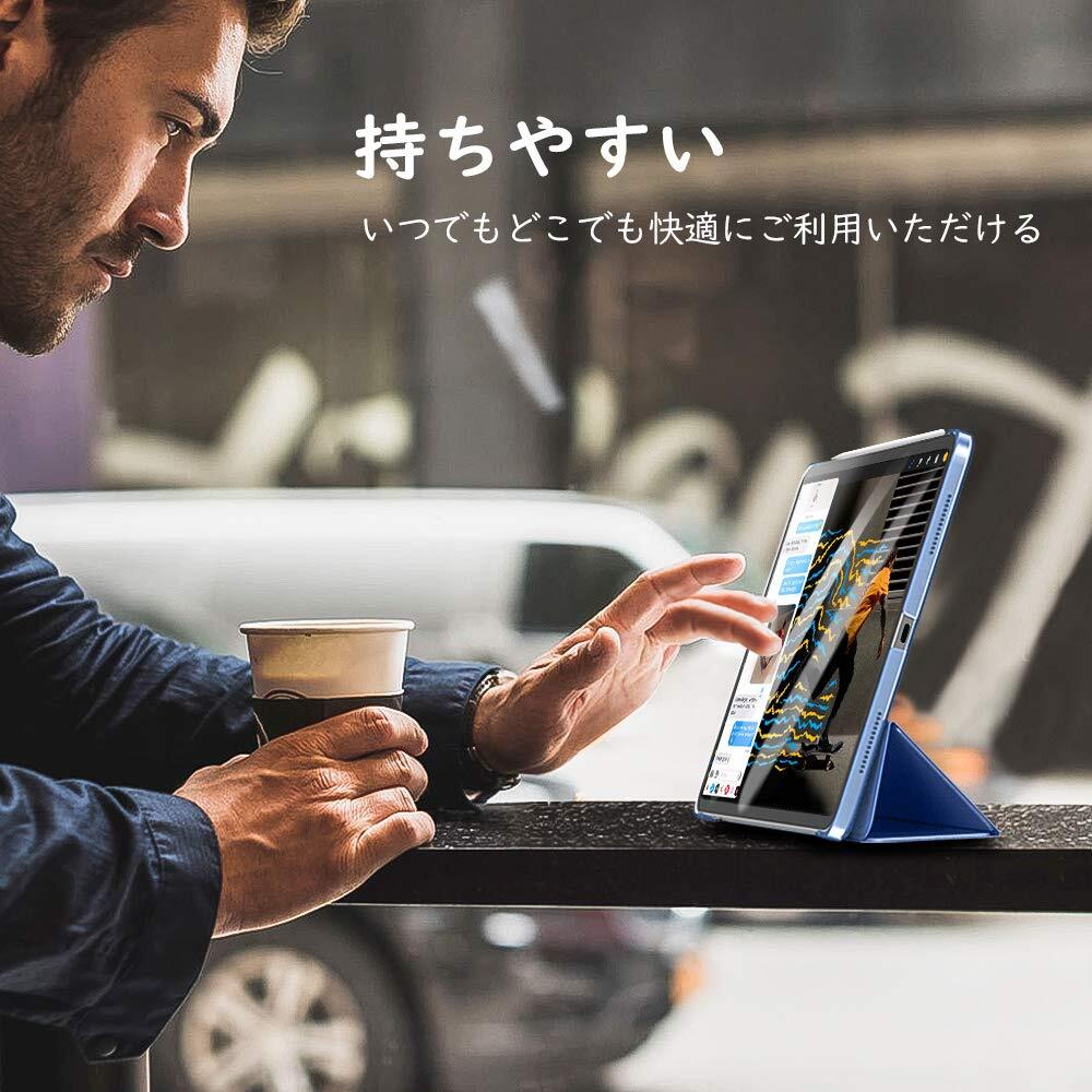 TiMOVO iPad Air 11インチ ケース M3/M2 第7/6世代 (2025/2024) iPad air 第5/4世代 ケース 10.9インチ iPadAir7/6/5/4 カバー 11インチ/10.9インチ PencilPro/第2世代ワイヤレス充電対応 PUレーザー 三つ折り オートスリープ機能 落下防止 手帳型 半透明 ネイビーブルー