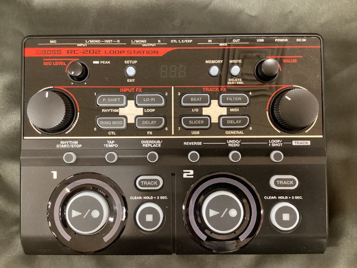 RC-202 は、クラブ/エレクトロニカ系ミュージシャンやビートボクサーに最適なルーパーとマルチエフェクツを搭載した、コンパクトなテーブルトップ・ルーパーです。ステージで定番となりつつあるBOSS ルーパー”RC-505”のデザインとテーブルトップの操作性を受け継いだコンパクトな2 トラック仕様に加え、様々な新しい機能も追加されています。INPUT FX とTRACK FX はそれぞれ最大4 つまで同時に使用することができ、ループ・フレーズをリアルタイムに保存しながらシームレスにパフォーマンスをつなげていくことが可能です。外部フットスイッチやMIDI などのコントロール機能も拡張されており、演奏中に手元の操作ができないギター、キーボードなどのプレーヤーにもおすすめの理想的なルーパーです。