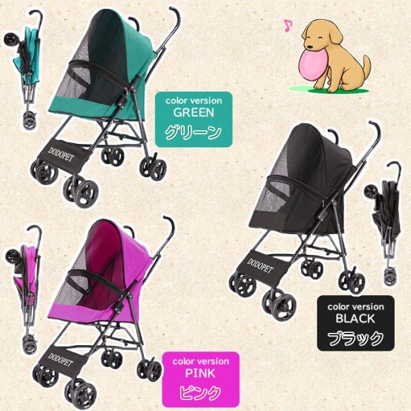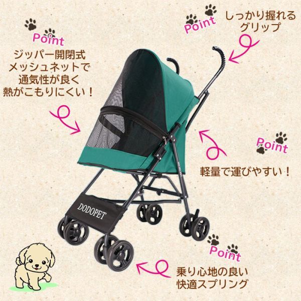 安定した4輪タイプで乗り心地の良くワンちゃんも安心です。
