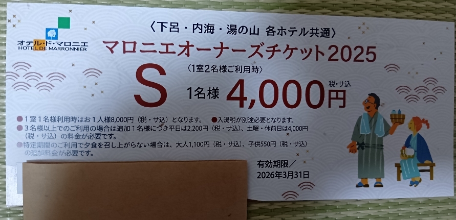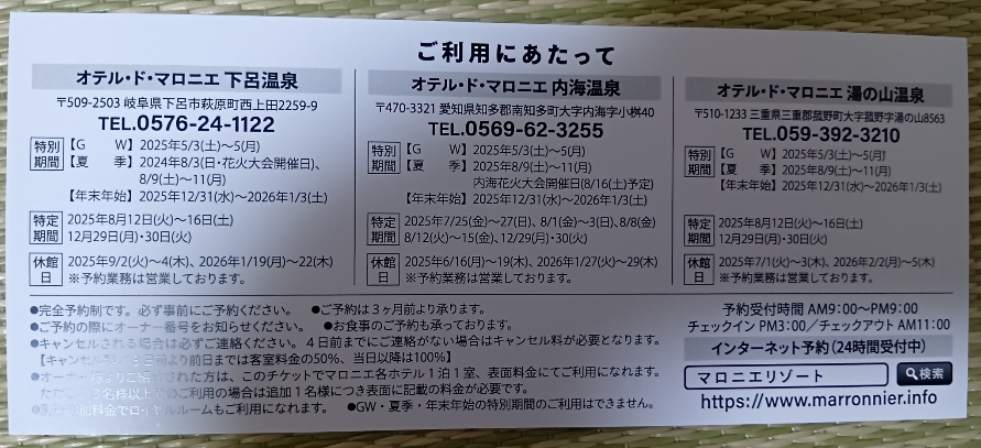 ①下呂温泉 内海温泉 湯の山温泉 オテルドマロニエホテル 宿泊 クーポン券 旅行 観光 割引券 優待券 招待券 旅館 素泊まり チケット 除外日