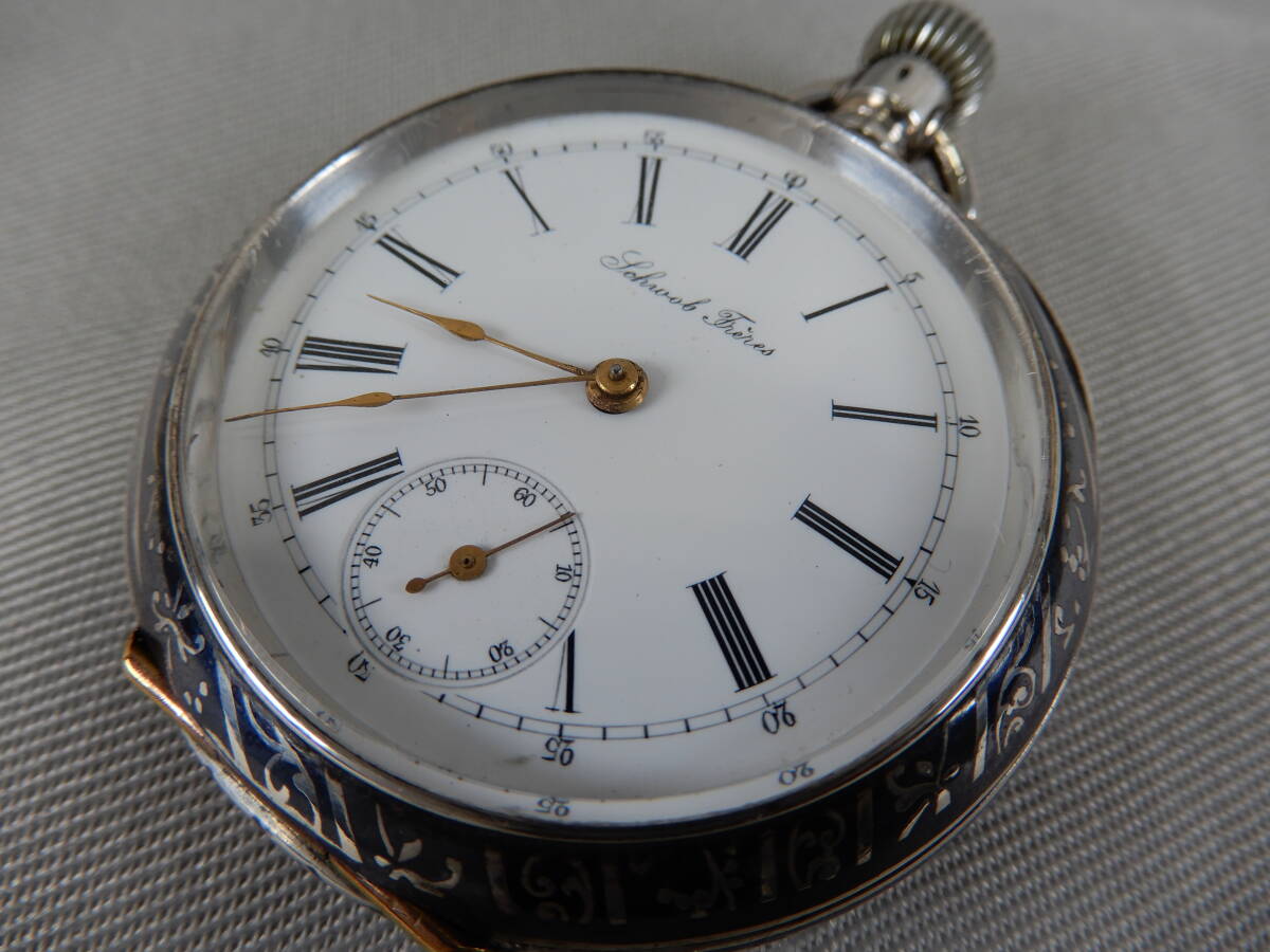 シュオブ・フレール(Schwob Freres) TAVANNES ニエル象嵌 商館時計/懐中時計・オリジナルケース付き・稼働品