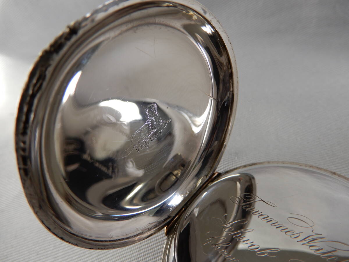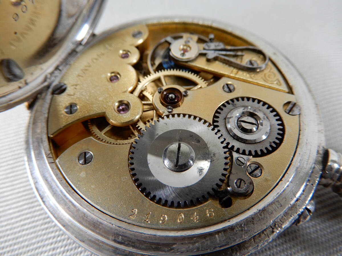 ケース:銀製のニエルケースは気になるような凹みやキズもなく奇麗だと思います。蓋は90度以内に開きしっかり閉まります。全体的に摩耗は少ないようです。風防も気になるようなキズもなく奇麗です。ただ、いずれも個人的な主観になりますので、あくまで写真優先とし、写真でのご確認をお願いいたします。裏蓋の内側に「犬マークとTRUSTY」と刻印されています。また内蓋には「Tavannes Watch Co Schwob Freres Chase-de-Fonds(読み間違いがあれば申し訳ありません。画像でのご確認をお願いいたします)と刻印されています。