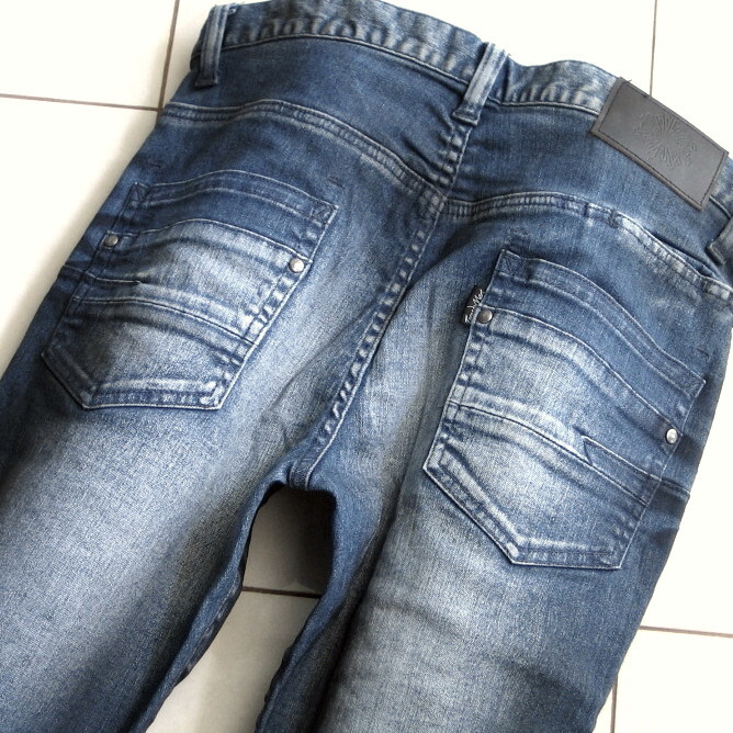 ■リジットデニムをしっかり履きこんだイメージのユーズドウォッシュをベースに、履きシワ加工と陰影のあるスプレーをオン