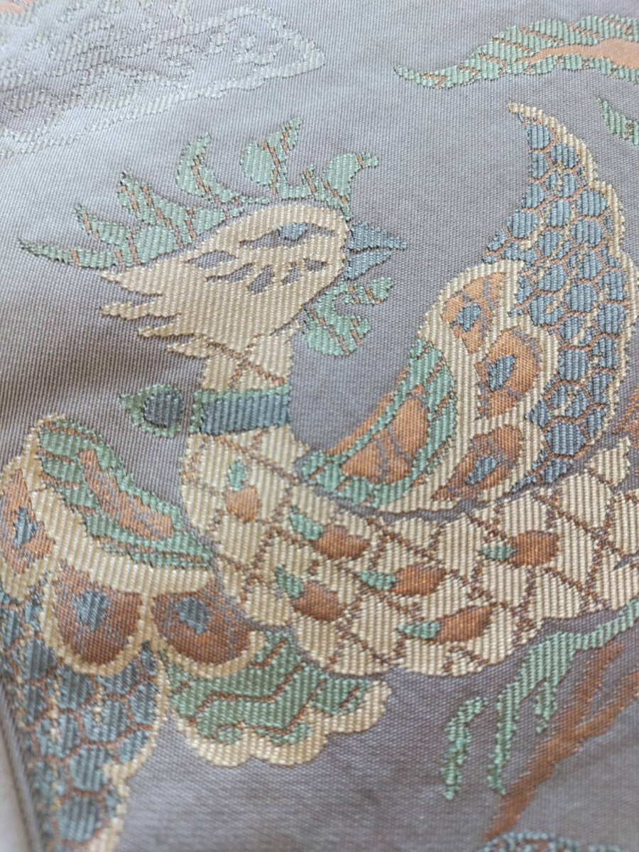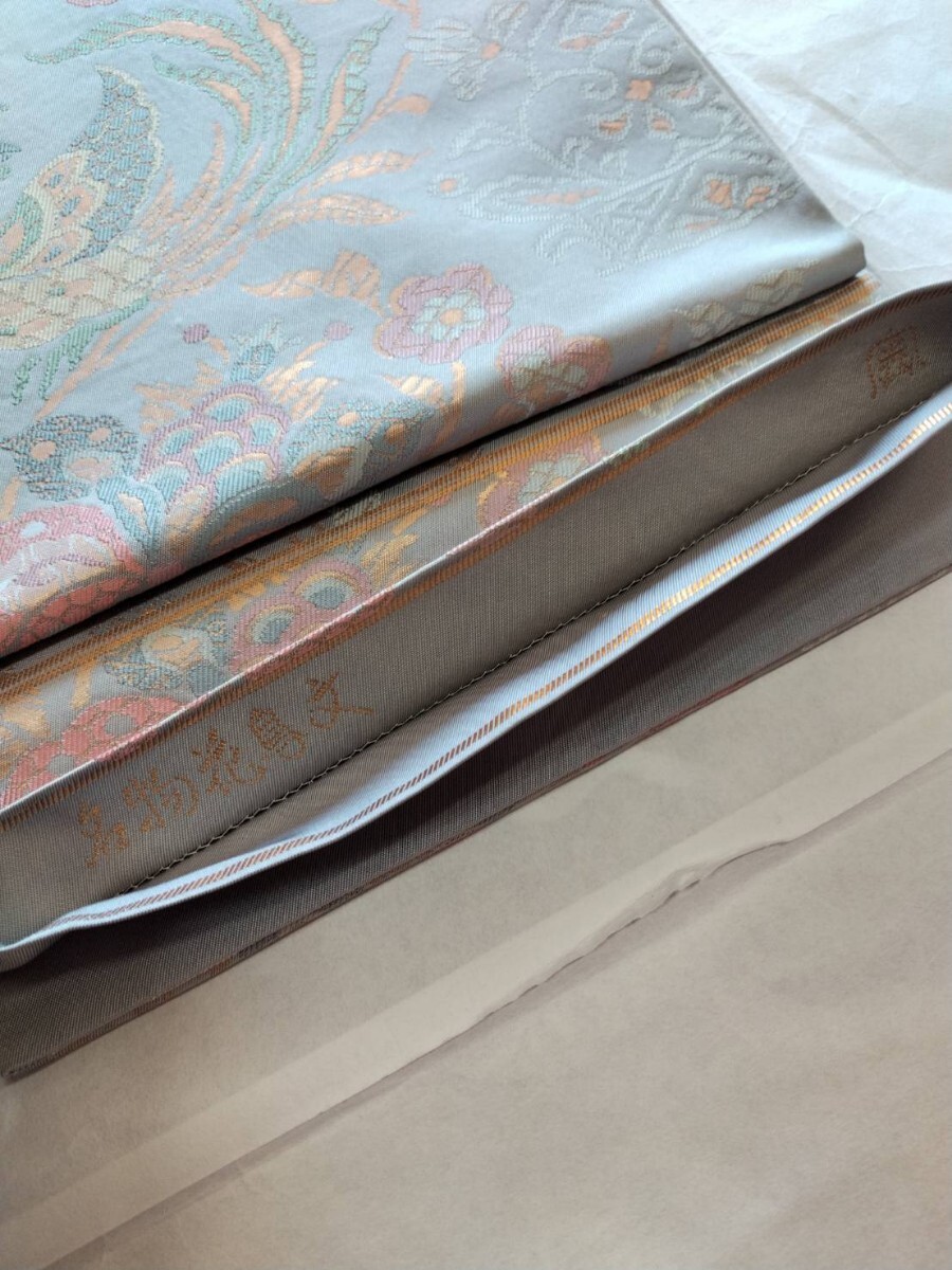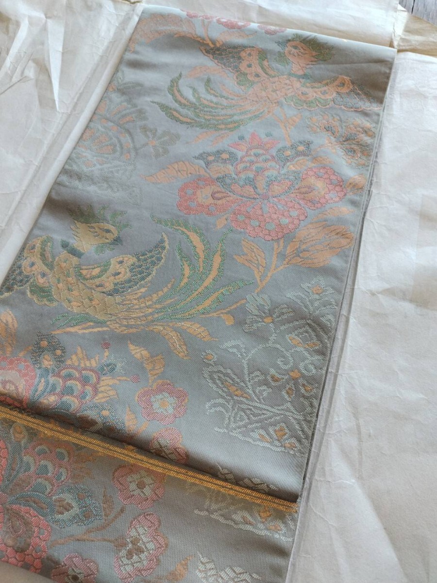 残念ながら織元、作家は不明ですがとても織味、手触りの良い本袋帯です。