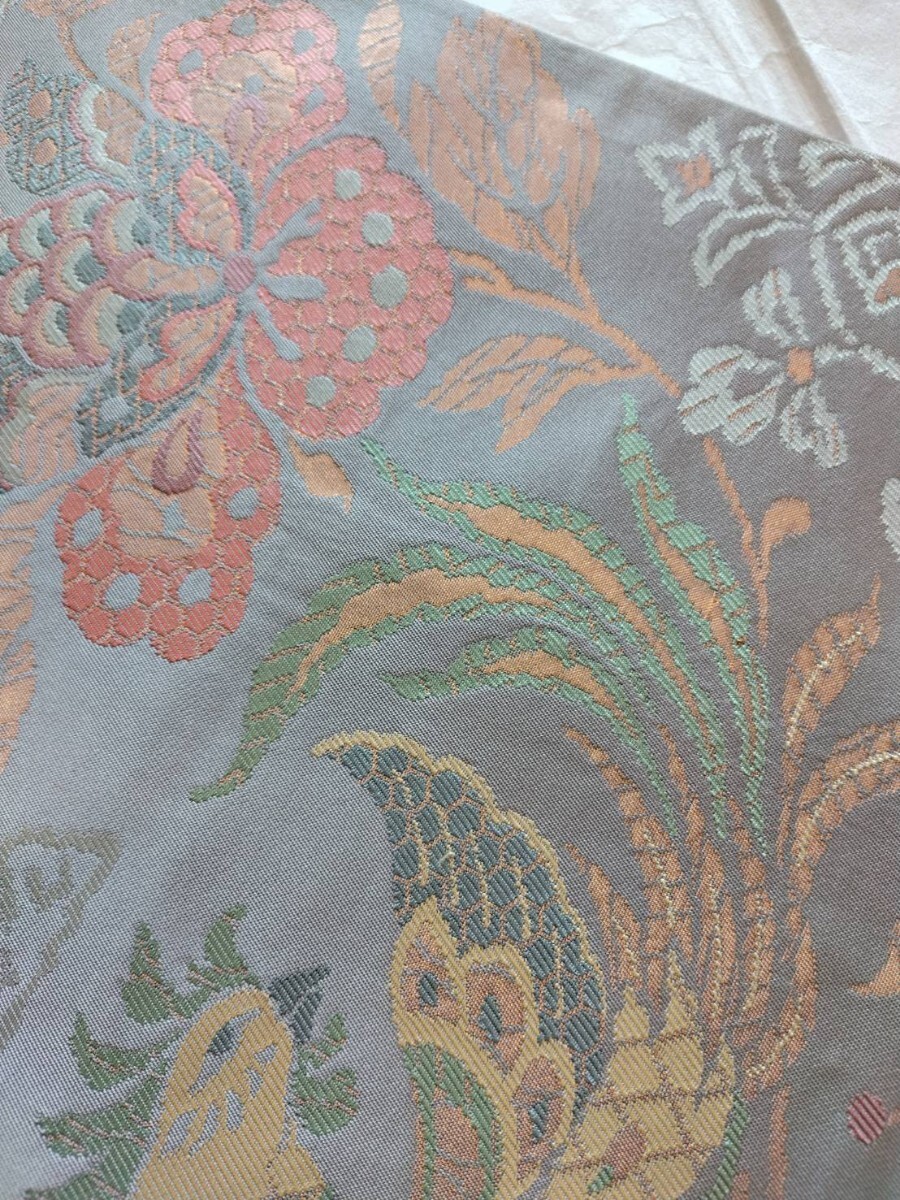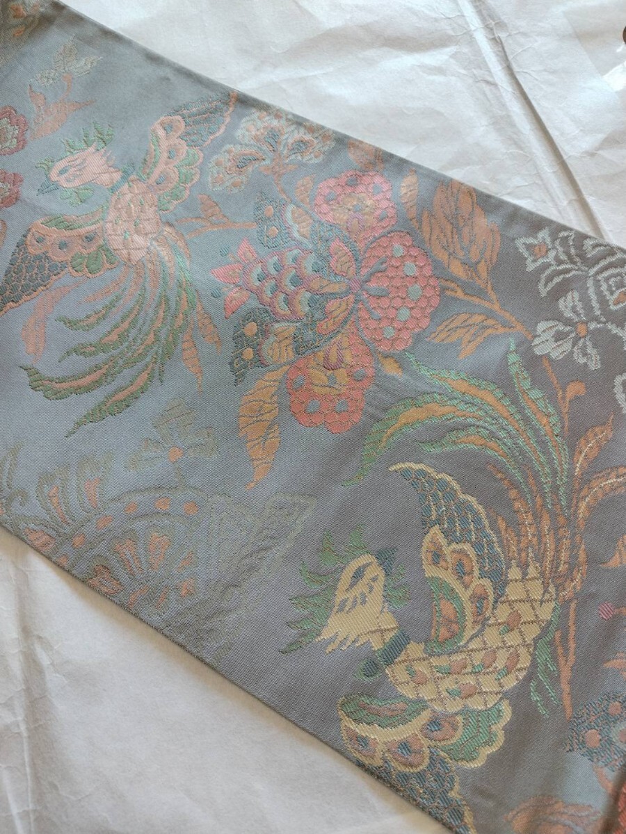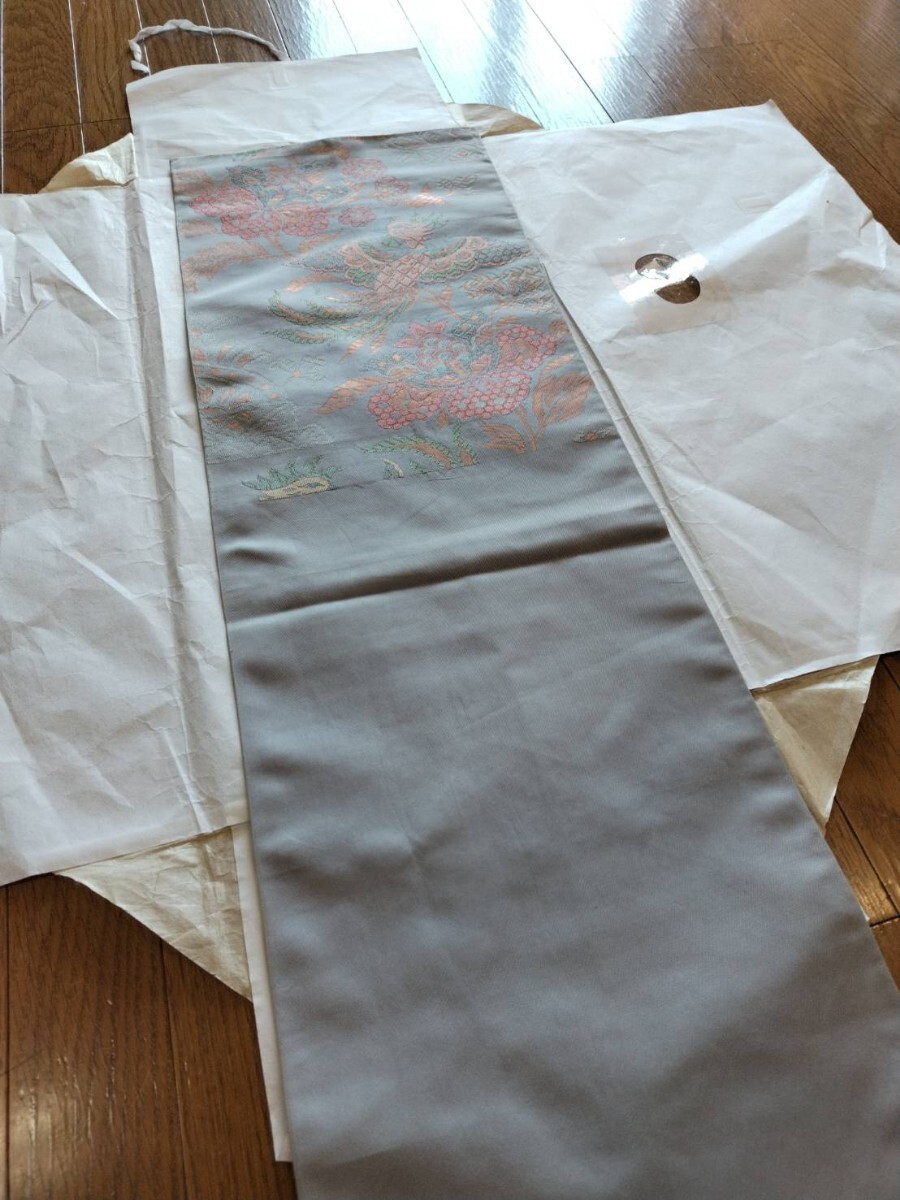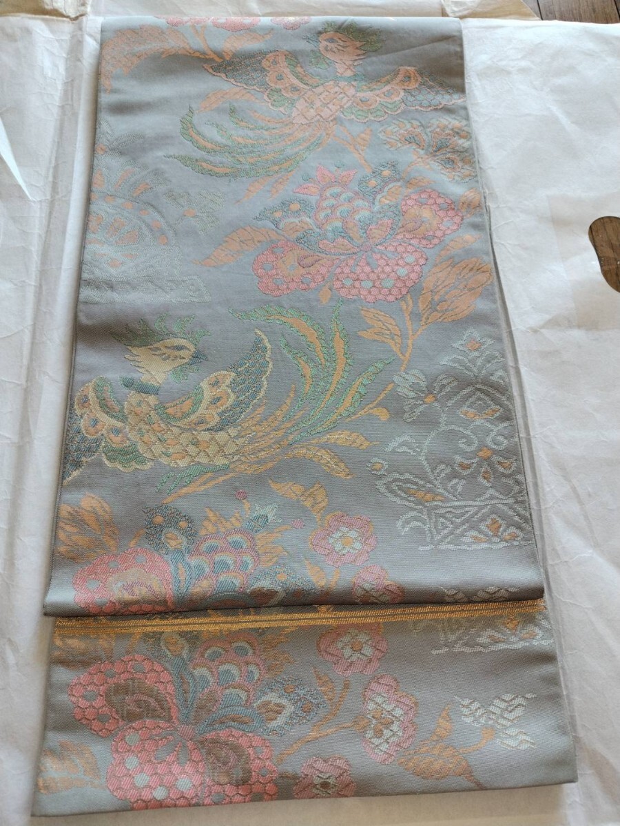 残念ながら織元、作家は不明ですがとても織味、手触りの良い本袋帯です。