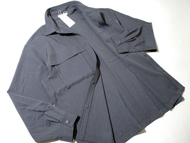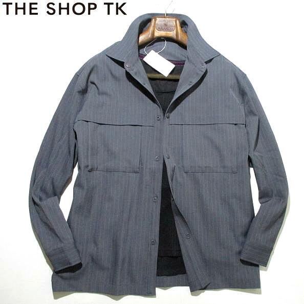 秋物▼ 新品 未使用 タケオキクチ シャツジャケット CPO グレー ピンストライプ Mサイズ THE SHOP TK メンズ 羽織りもの