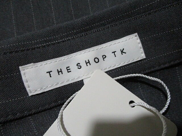 THE SHOP TKのシャツジャケットです。グレーのピンストライプ柄がおしゃれです。昼夜で気温差のある今くらいの季節には特に大活躍します。新品、未使用ですのでお見逃しなく!