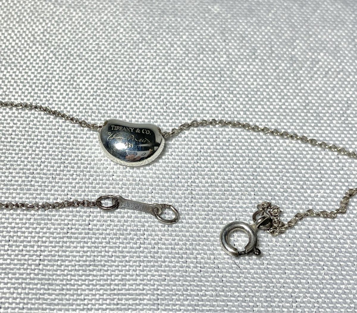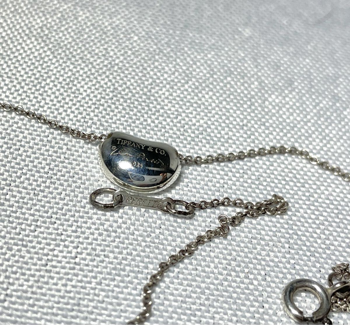 即決美品 Tiffany ティファニー エルサペレッティ ビーン ペンダント ネックレス 鏡面スターリングシルバー SV925 チェーン41cm 付属品あり