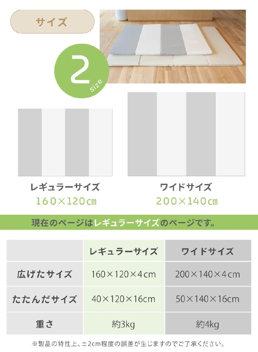 【在庫限りです】送料無料!赤ちゃん防水プレイマット(ベージュ×ホワイト,200×140cm)厚手(ケラッタ)リバーシブル1級防音折りたたみ