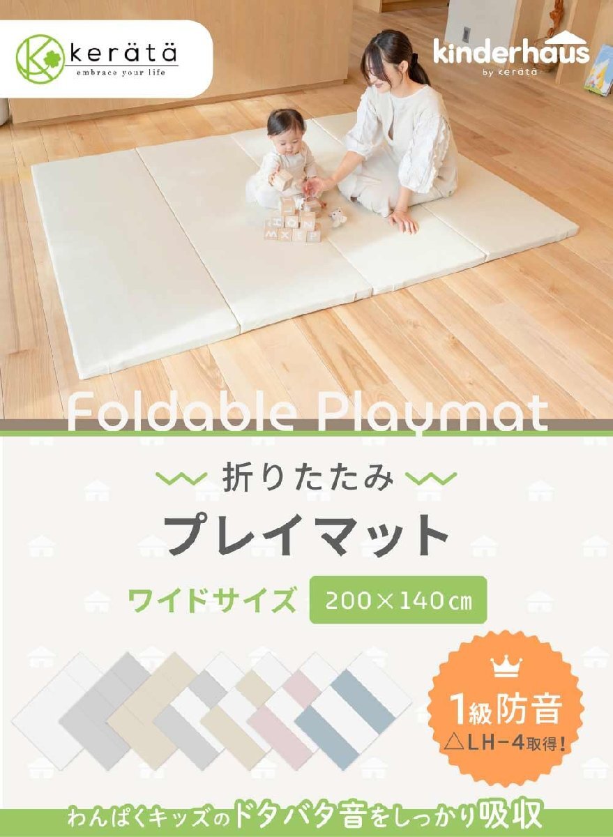 ブランド:ker?t?(ケラッタ)カラー:ベージュ×ホワイトサイズ:200×140cm【防音プレイマット】わんぱくなお子さまが転んでも、転がっても、飛び跳ねても大丈夫!使い心地、座り心地、防音・はっ水等の機能性など、ママ・パパや子ども目線の「うれしい!」がいっぱいのプレイマットです!【豊富なカラーラインナップ】ケラッタのプレイマットは単色と2トーンの2パターン。シンプルで使いやすい「ホワイト」、やさしい雰囲気の「ライトグレー」「グレー×ホワイト」、ナチュラルな「ベージュ」「ベージュ×ホワイト」、おしゃれなアクセントになる「ピンク×ホワイト」、クールに彩る「ブルー×ホワイト」の7カラーをご用意しました。【4cmの厚手で座り心地も快適】プレイマットの厚さは4cmと、程よい厚みとクッション性で座り心地も快適。床からの冷気もシャットアウトできるので、冬のおうち遊びにもぴったり。