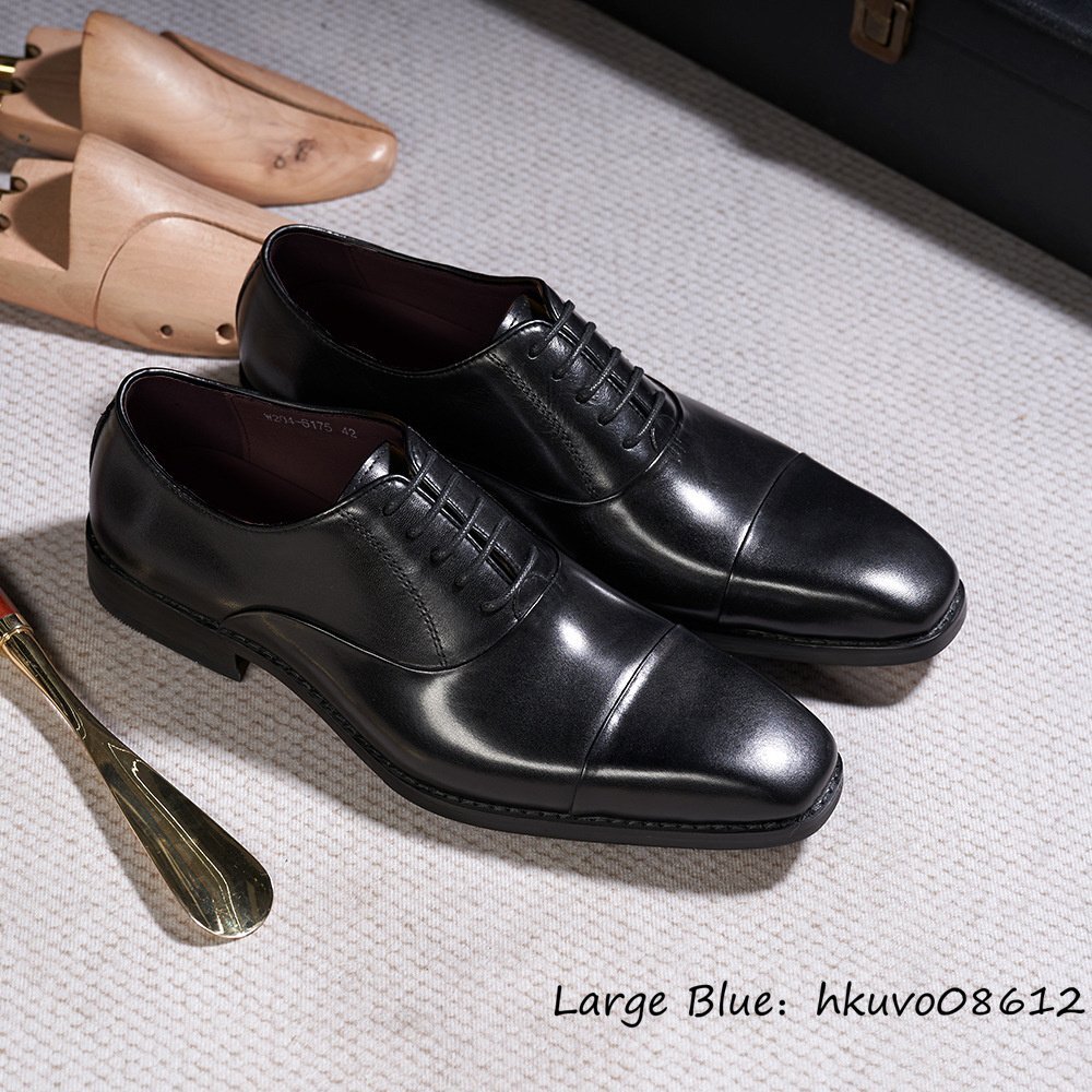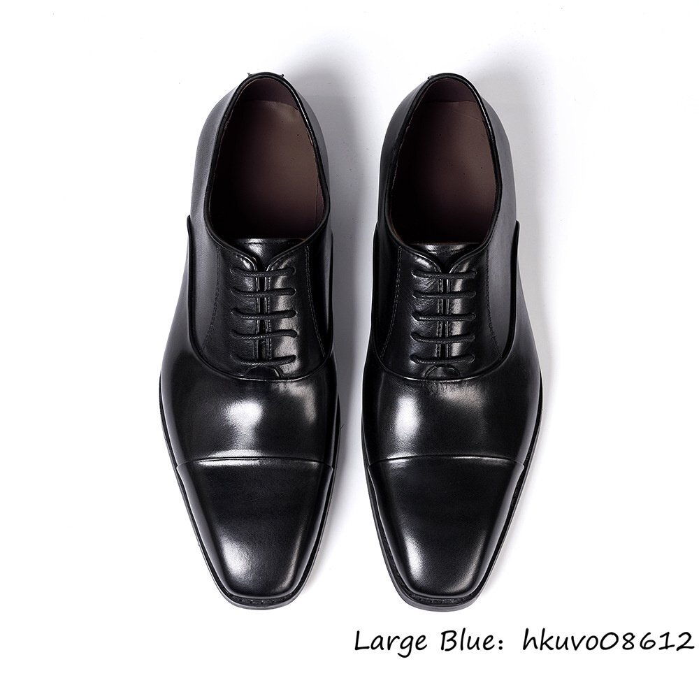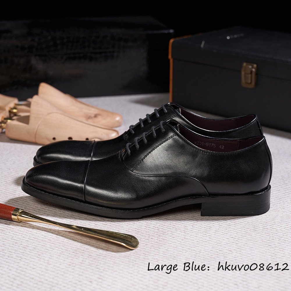 定価11万超★本革 ビジネスシューズ メンズ 職人手作り 最高級 牛革 レザーシューズ 内羽根 紳士用 革靴 フォーマル 宴会 ブラック 24.5cm