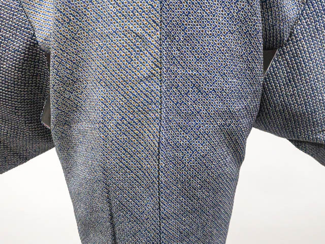 リサイクル商品のため、衿汚れ、色むらがございますがご着用いただけると存じます。 地色はくすんだ青です。 1枚目の画像が近いお色かと思われます。 素材は正絹です。 |
