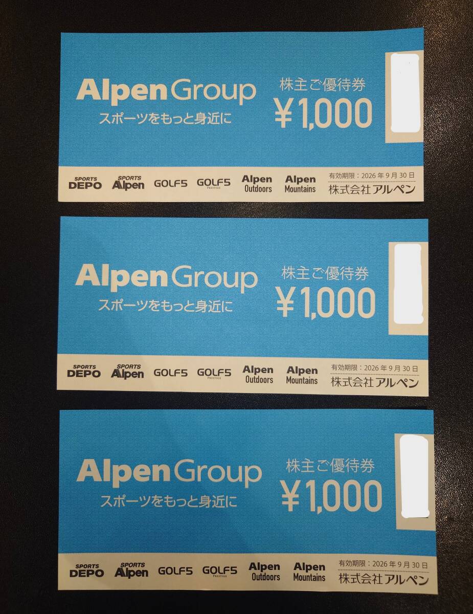 ★ 最新 ★ 送料無料 ★ アルペン株主優待券 ¥3,000円分