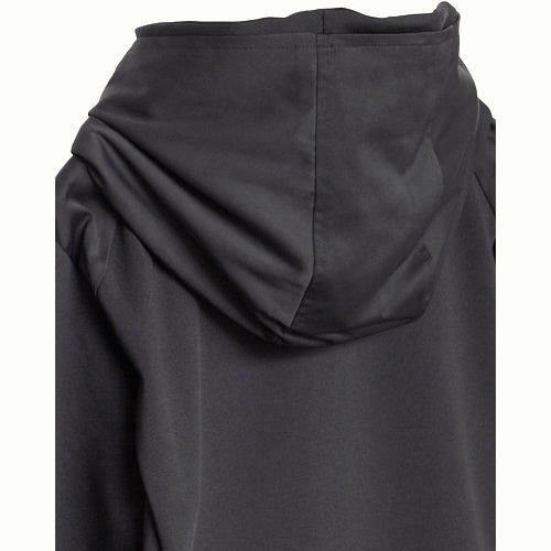 ■二重のフードデザインや切り替えに使用したマットサテンがマッチしキレイ目に仕上げた一着