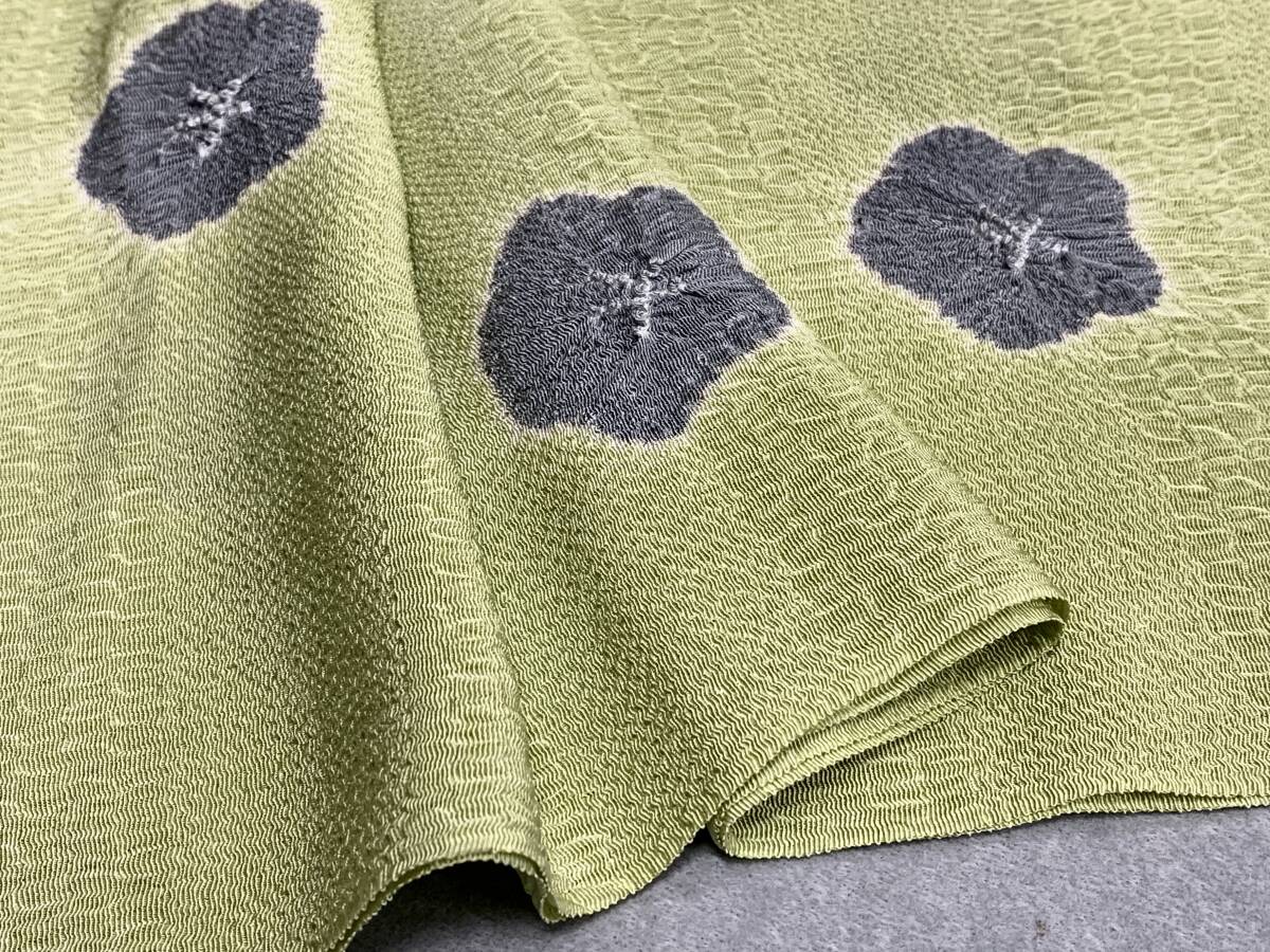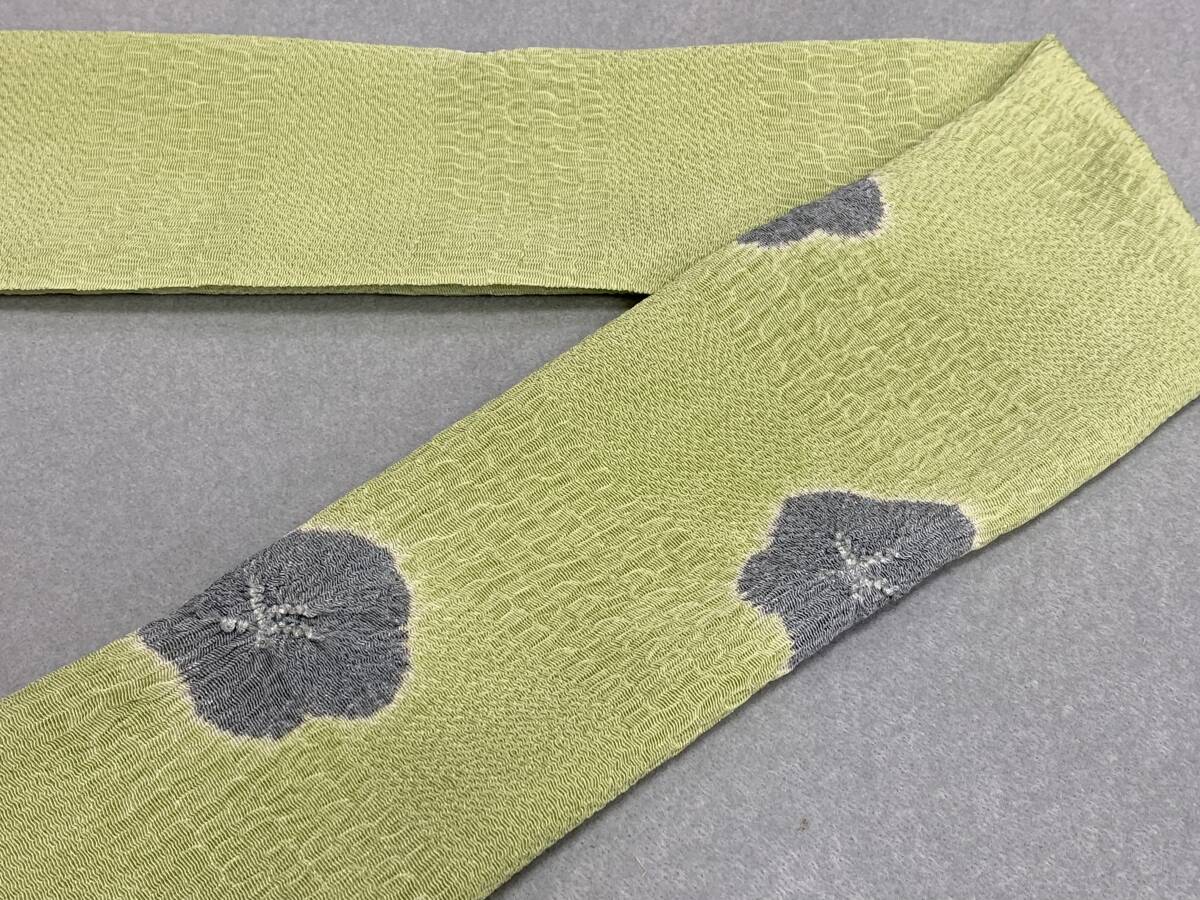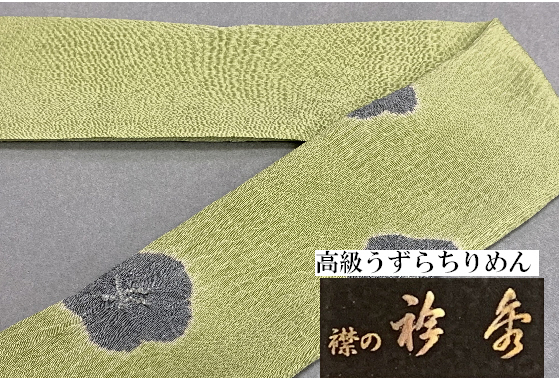 送料無料!専門店の品 『京都 衿秀謹製』高級正絹うずらちりめんりんだし帯揚げ◆おしゃれから準礼装まで◆【若草色 グレー絞り】