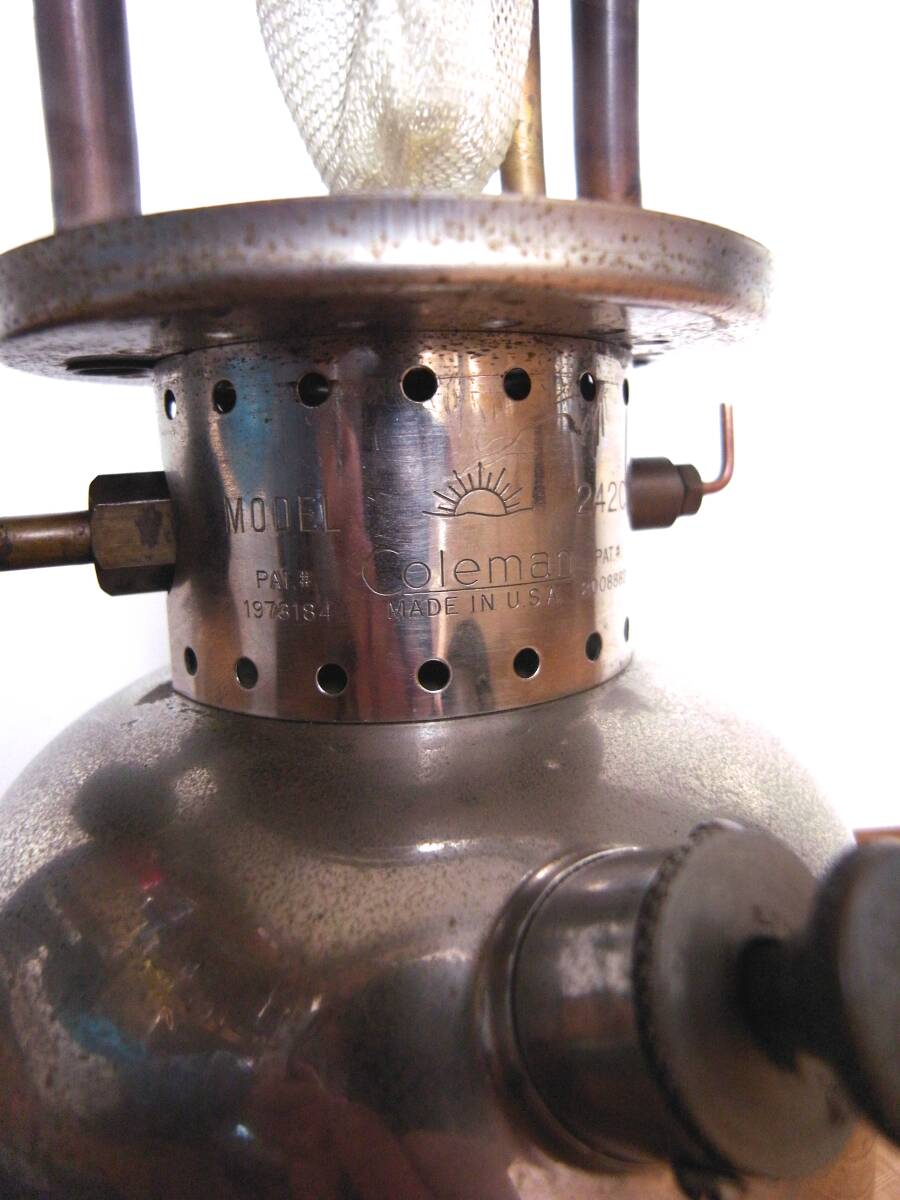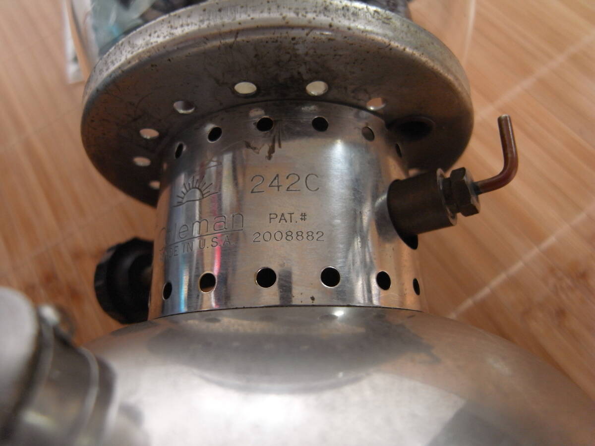 Coleman 242C タンク底に錆び穴あり 部品取りにどうぞ、数十年前にアメリカのオークションサイトで購入したものです。当初は底にメタルの様な物で塞いでありましたがディスプレイとして購入した物なので実際に燃料を入れて点灯した事はありませんでした。最近掃除をした時にメタルの硬さを調べるためにカッターで削ってみた所そこそこの硬さがあったのですが取ってしまいました。もともと使用する気はありませんでしたしこれからも使う事も無いと思いますので修理なり部品取りなりで必要な方いかがですか?ノークレーム・ノーリターンにてお願いします。