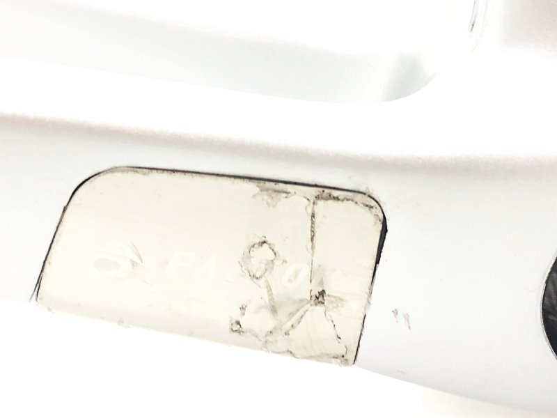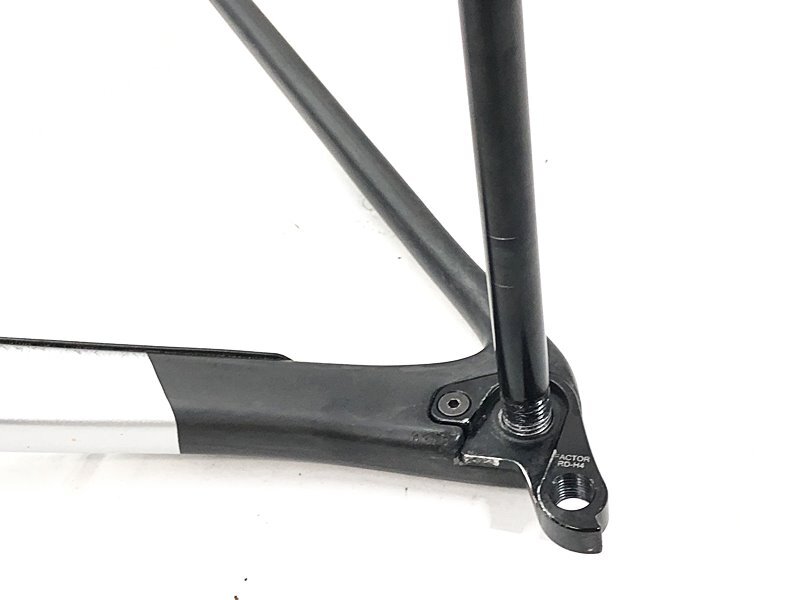 リアのスルーアクスルのネジ山が潰れており、交換が必要です。予備のRDハンガーは付属します。チェーン落ちにより、チェーンステー右ののガードテープ、チェーンステー裏、リアエンド右内側にキズがあります。使用感がややあり、細かい傷、汚れがありますが、比較的きれいな状態です。