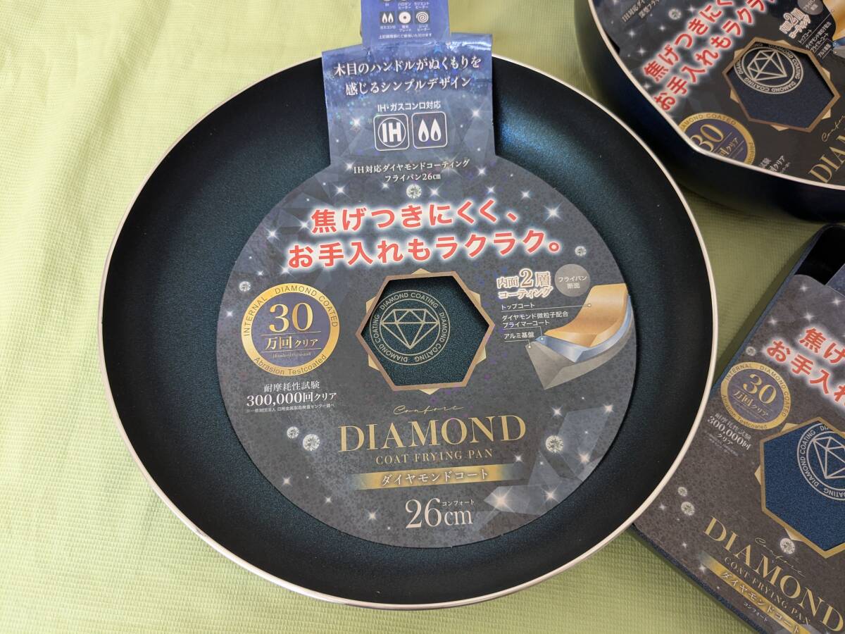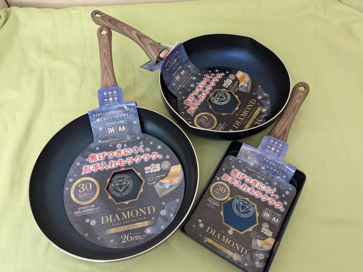 【送料無料】【訳あり3点セット(難あり)】【未使用品】カクセー ダイヤモンドコーティング フライパン (26cm・深型24cm・玉子焼き器) 耐摩耗試験30万回クリア