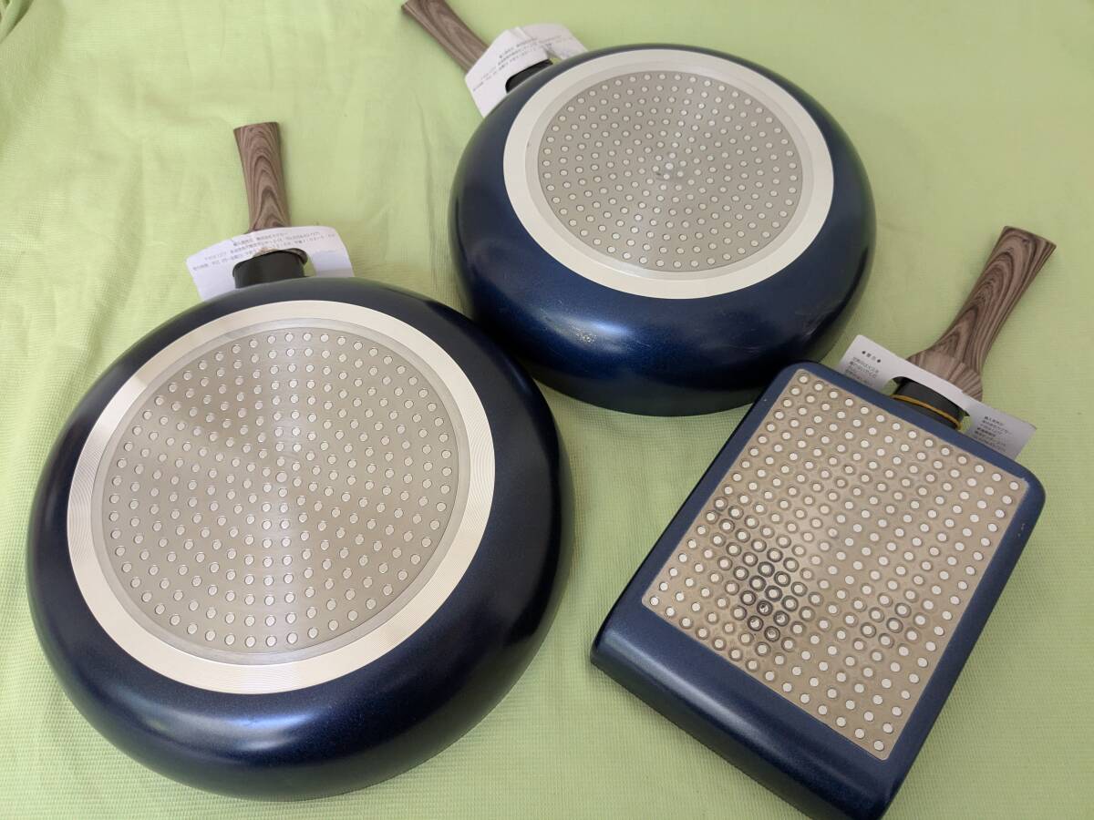 【送料無料】【訳あり3点セット(難あり)】【未使用品】カクセー ダイヤモンドコーティング フライパン (26cm・深型24cm・玉子焼き器)