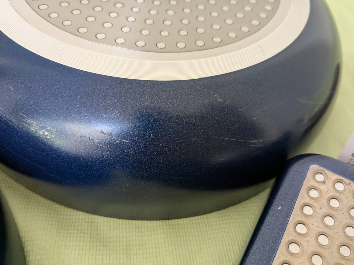 【訳あり】フライパンには、それぞれ、多少の歪み・色むら・側面にスレ傷・汚れ・変色がございます。(商品画像参照)