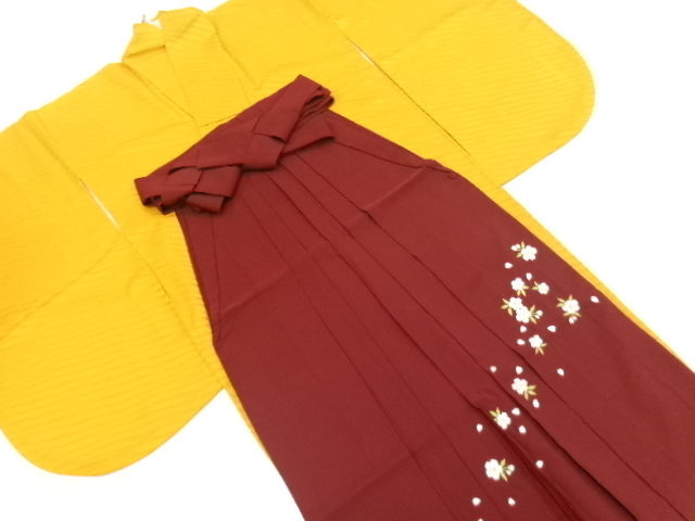 斜め縞模様織り出し 二尺袖着物 桜模様 刺繍 女袴セット (AJA3K-033)