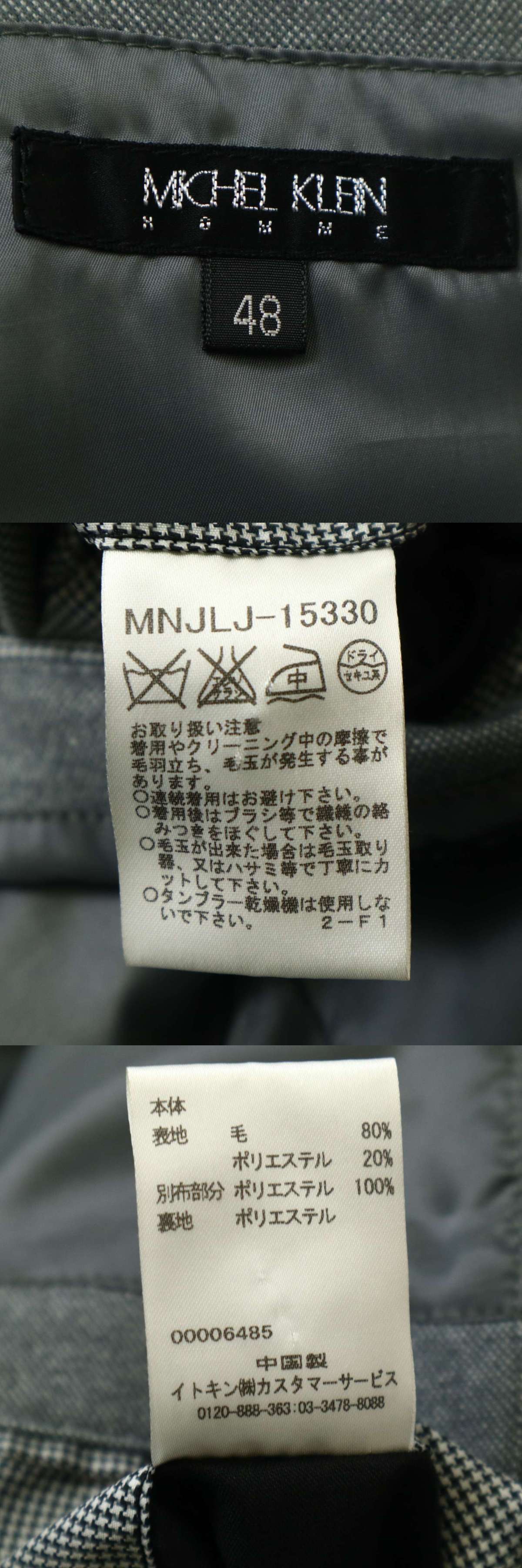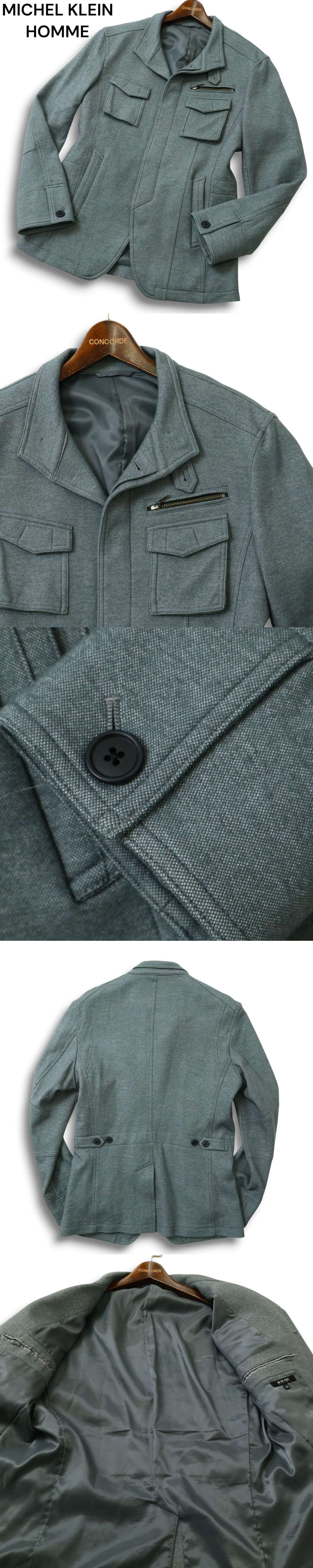 MICHEL KLEIN HOMME ミッシェルクラン オム 秋冬 ウール★ スタンドカラー ワーク ジャケット Sz.48 メンズ グレー