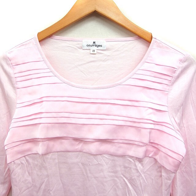 クレージュ courreges 7分袖 カットソー ティアード 素材切替 無地 40 ピンク /FT30 レディース