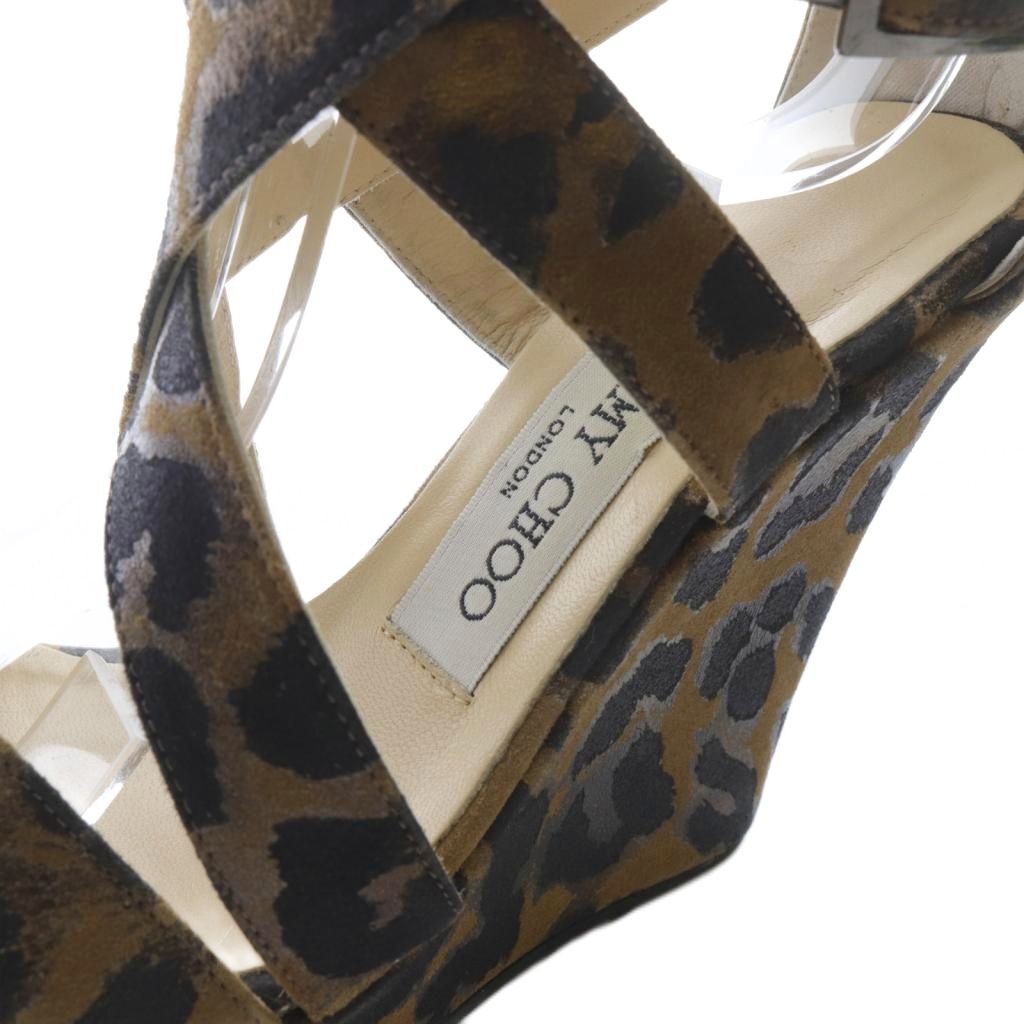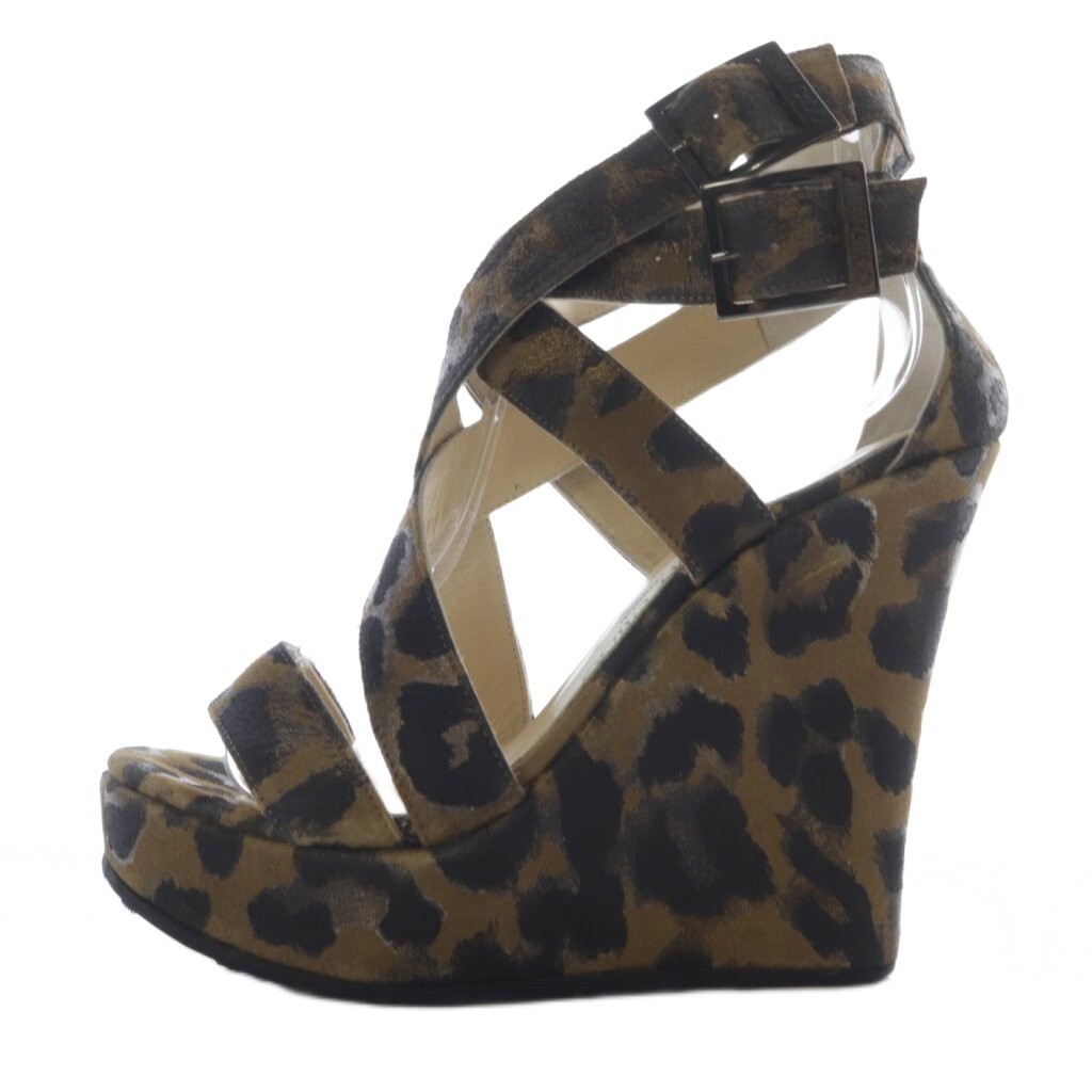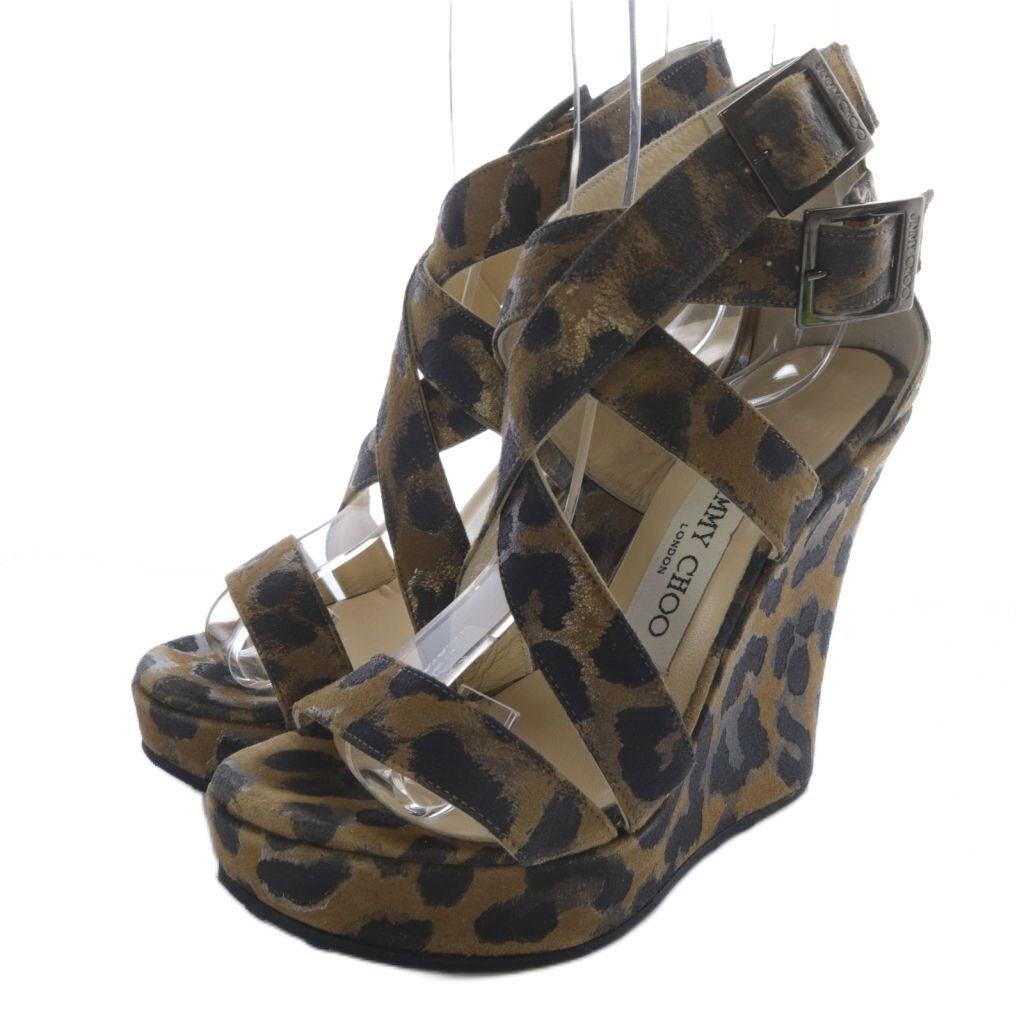 ジミーチュウ JIMMY CHOO レオパード ダブルストラップ ウエッジソール サンダル 35 茶 ブラウン /SR ■SH レディース