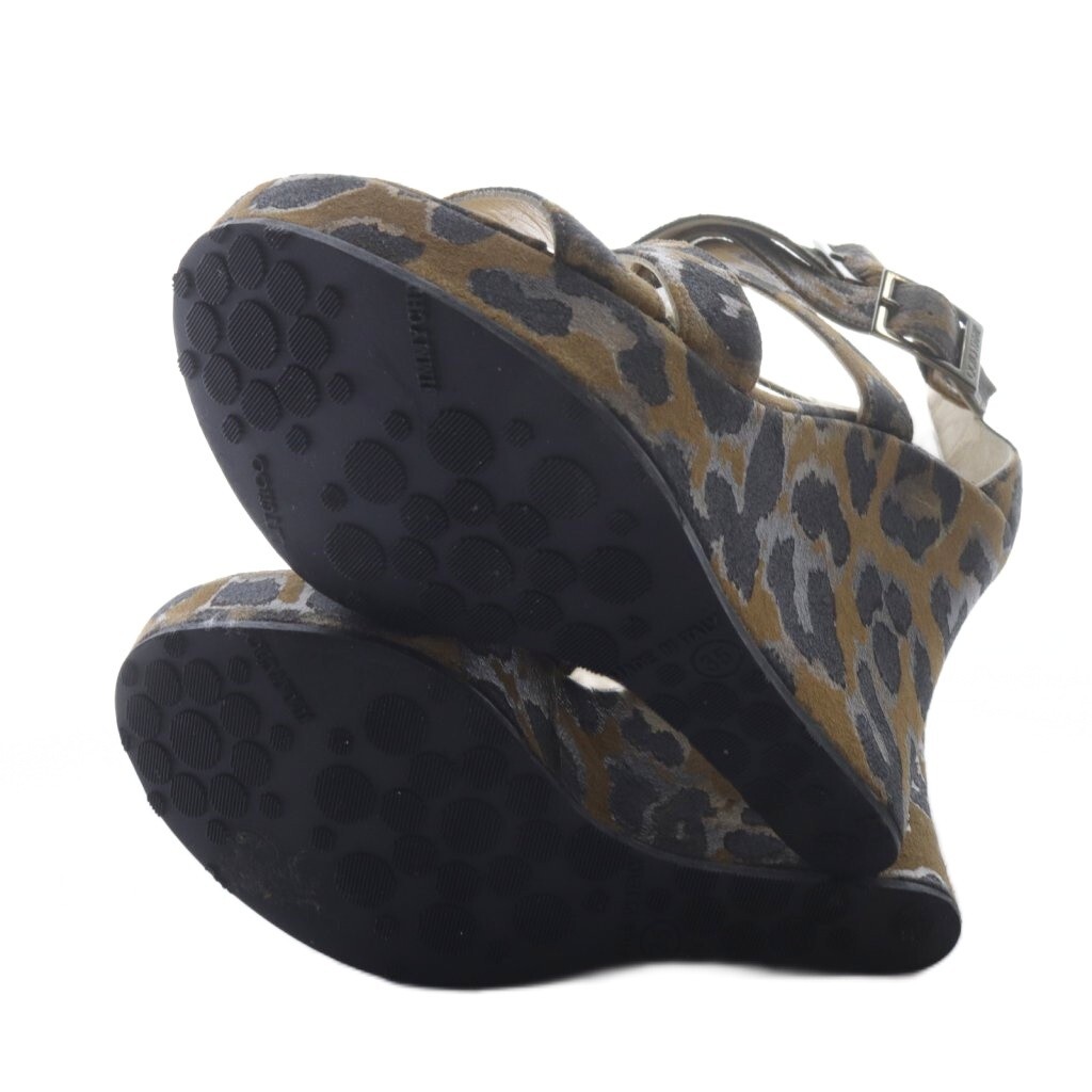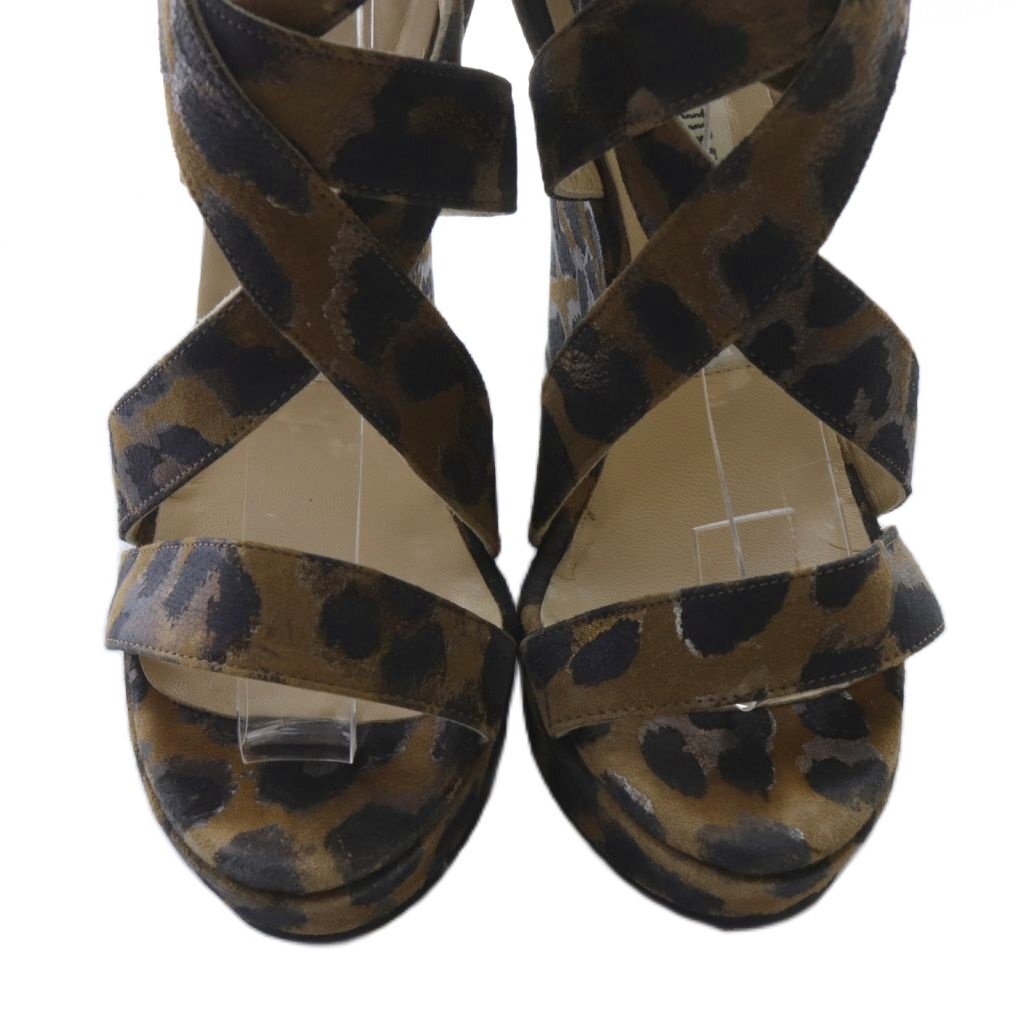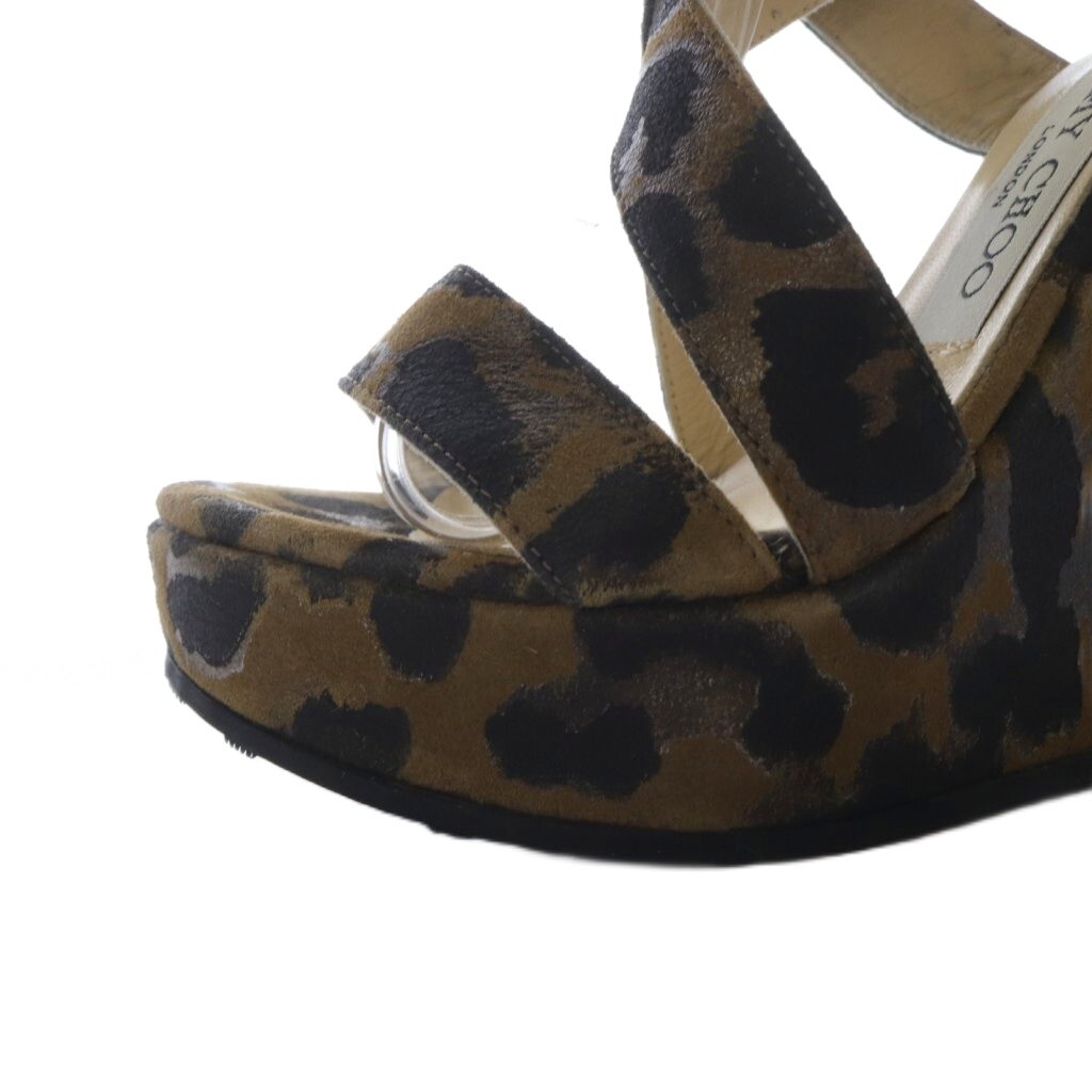 ジミーチュウ JIMMY CHOO レオパード ダブルストラップ ウエッジソール サンダル 35 茶 ブラウン /SR ■SH レディース