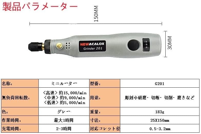 【USB充電式&コードレス】リューター充電式のモデルはコードレス式で、作業中に線に邪魔される心配しません。リチウム電池を採用し、普通なMirco USBで接続して充電できます。