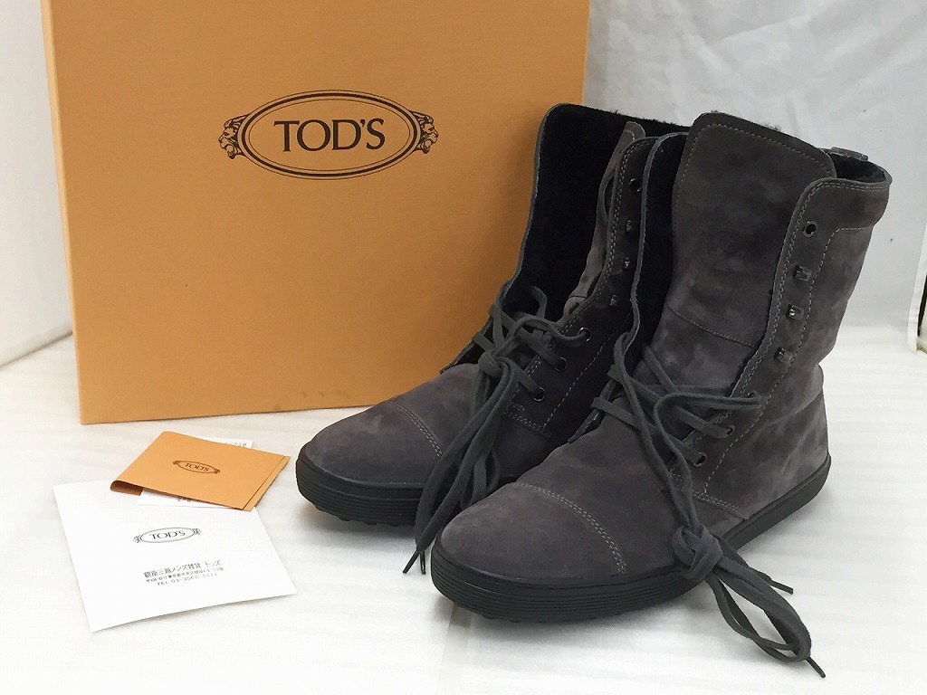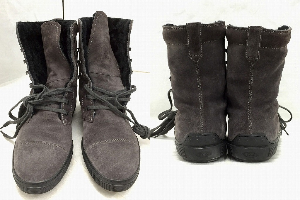 トッズ TOD'S ハイカット ムートン メンズ ブーツ 25.5cm グレー