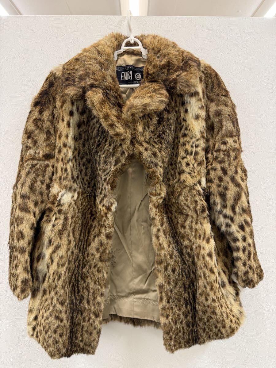 【希少 高級毛皮】EMBA ファーコート ヒョウ柄風 リアルファー ジャパン製 ビンテージ レディース アウター 現状品 プレミアム