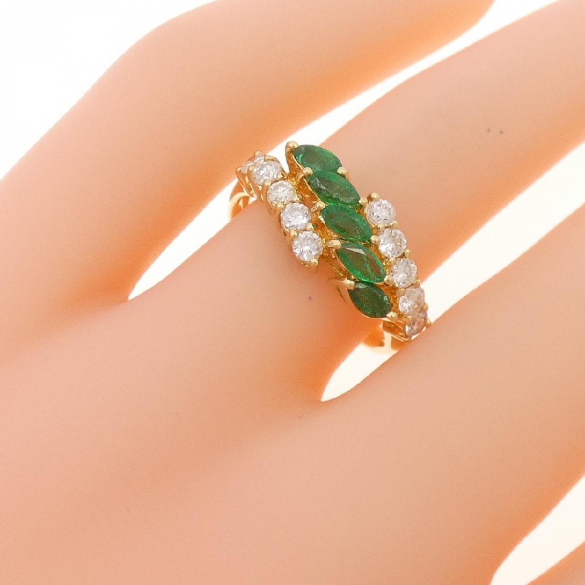 鮮やかなグリーンカラーのエメラルドの脇にクリアに光るダイヤモンドをセッティング。パッと明るく指元を飾るジュエリーです。