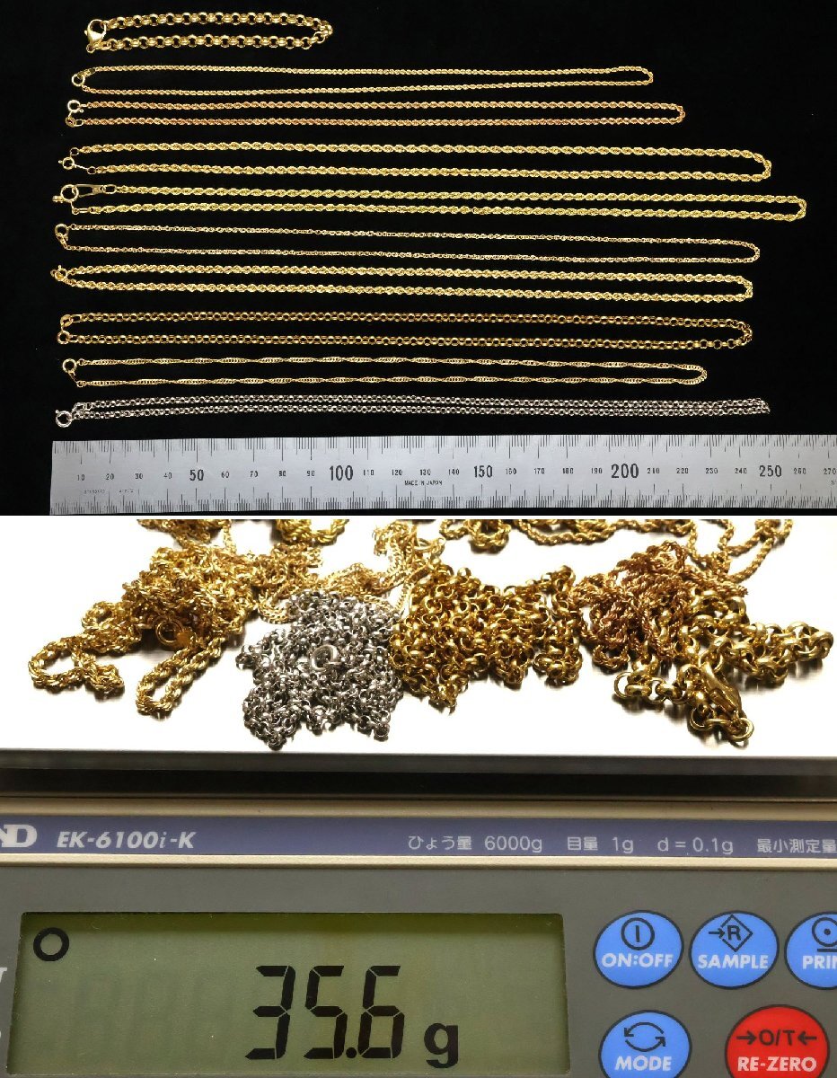 おたからや◆K18,750,18KT刻印チェーンネックレス,ブレスレットおまとめ《約35.6g》※全て磁性あり,X線用紙付【B-YA02483】