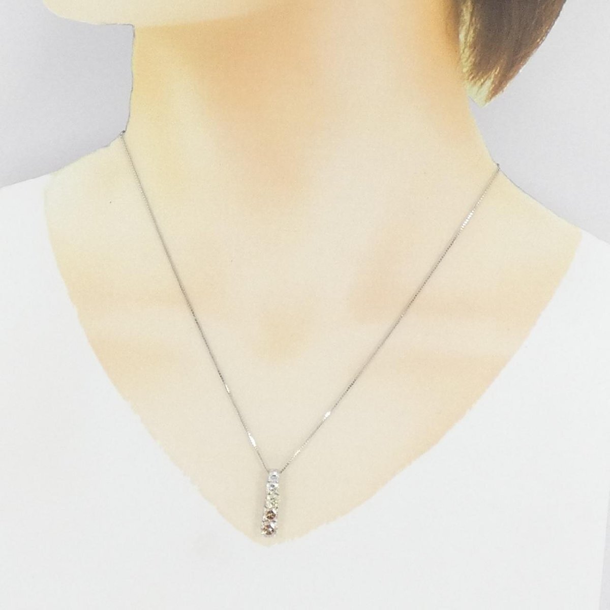 クリアに煌くダイヤモンドからブラウンがかったダイヤモンドへとグラデーションが美しいネックレス。胸元を上品に飾ります。