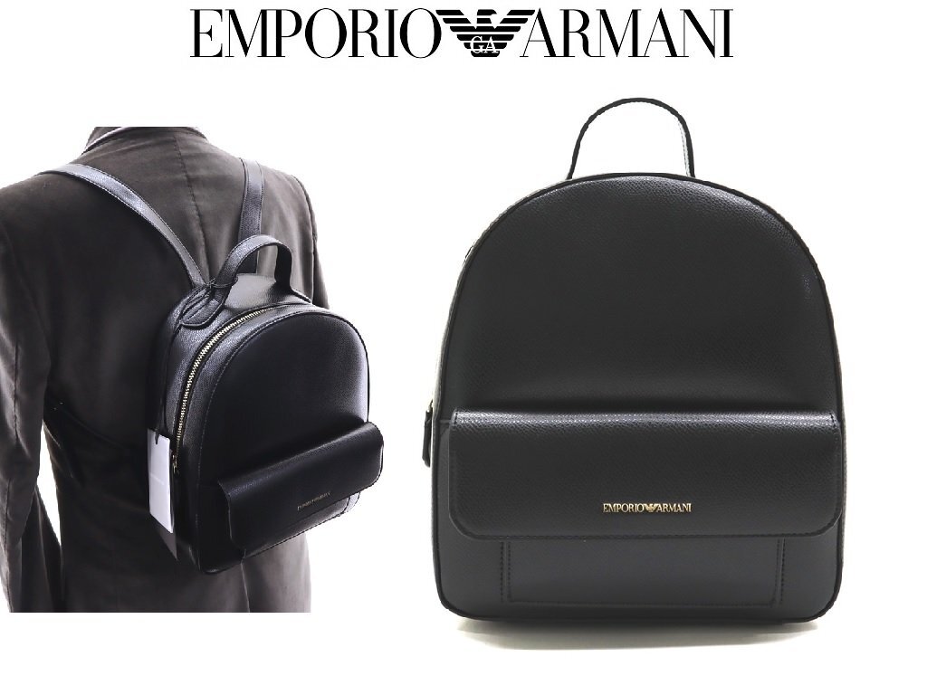 8万新品◆EMPORIO アルマーニ 軽量PUレザー A5サイズ イーグルロゴバックパック 黒