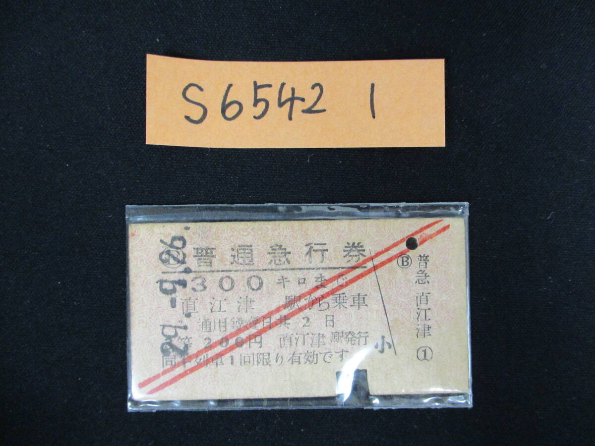 F7 【鉄道硬券】普通急行券 300キロまで 直江津駅から乗車 昭和29.9.26 約1枚セット 【鉄道切符】 S6542