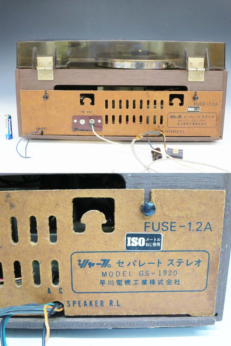 ◆(TH) SHARP シャープ セパレートステレオ GS-1920 真空管ラジオ レコードプレーヤー 昭和レトロ 早川電機工業 ジャンク