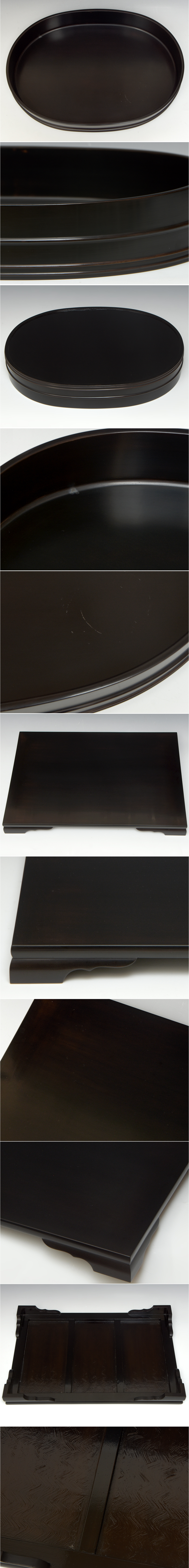塗師 前田千波(造)艶消黒塗 馬盥です。 馬盥は生け花をさすのに使う、馬を洗うのに使う大形のたらいの形をした水盤です。 未使用品ではないため盥の見込み部分に一部スレ・使用歴見られますが、ご鑑賞の妨げになることはございません。 丁寧に保管管理されたいた跡が見受けられる品で、それ以外に著しい汚損破損は花台共にございません。 ※予めご了承の上ご入札お待ちしております。 ※撮影の際に生じた写り込みなどがございます。 ご理解の程よろしくお願い致します。 |