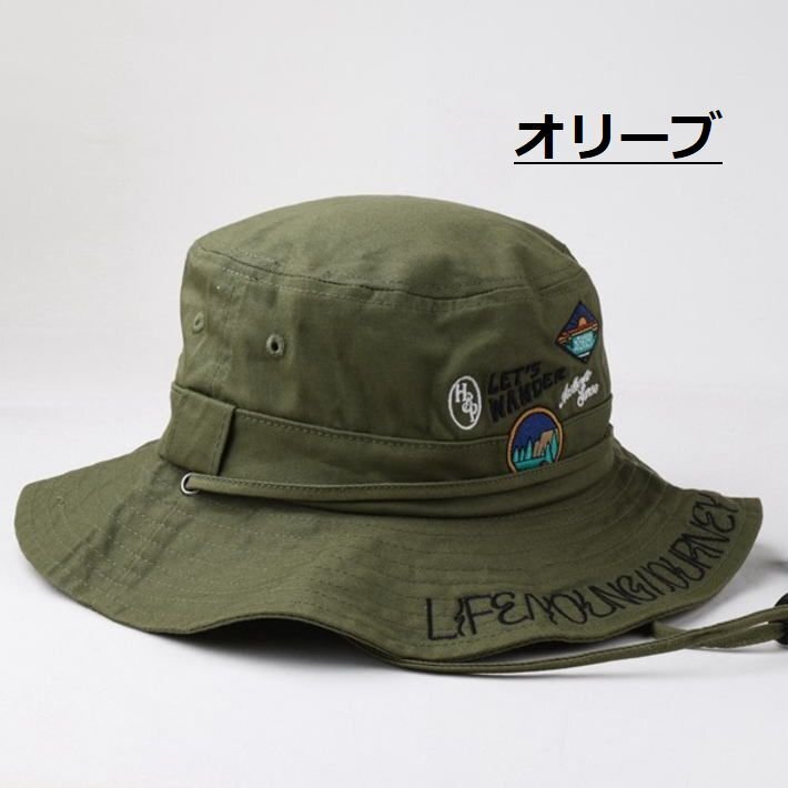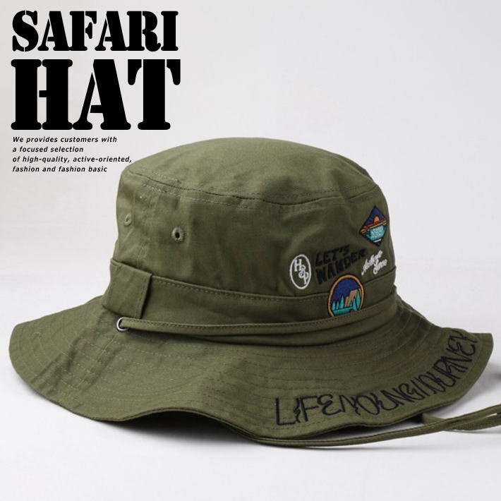 サファリハット ハット 帽子 メンズ レディース アドベンチャーハット 刺繍 コットン Vintage 7986985 オリーブ 新品 1円 スタート