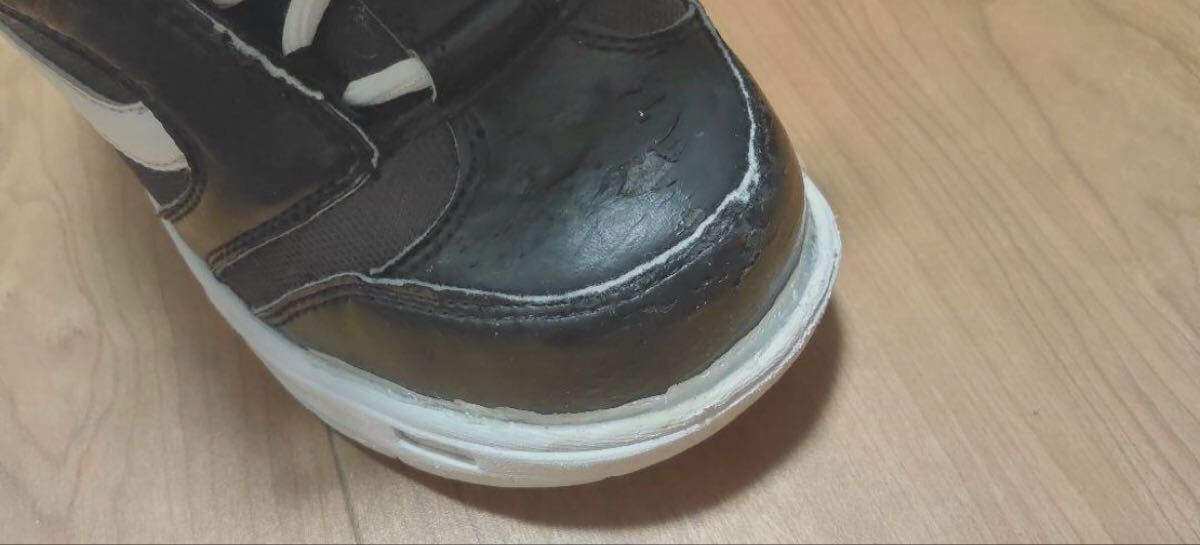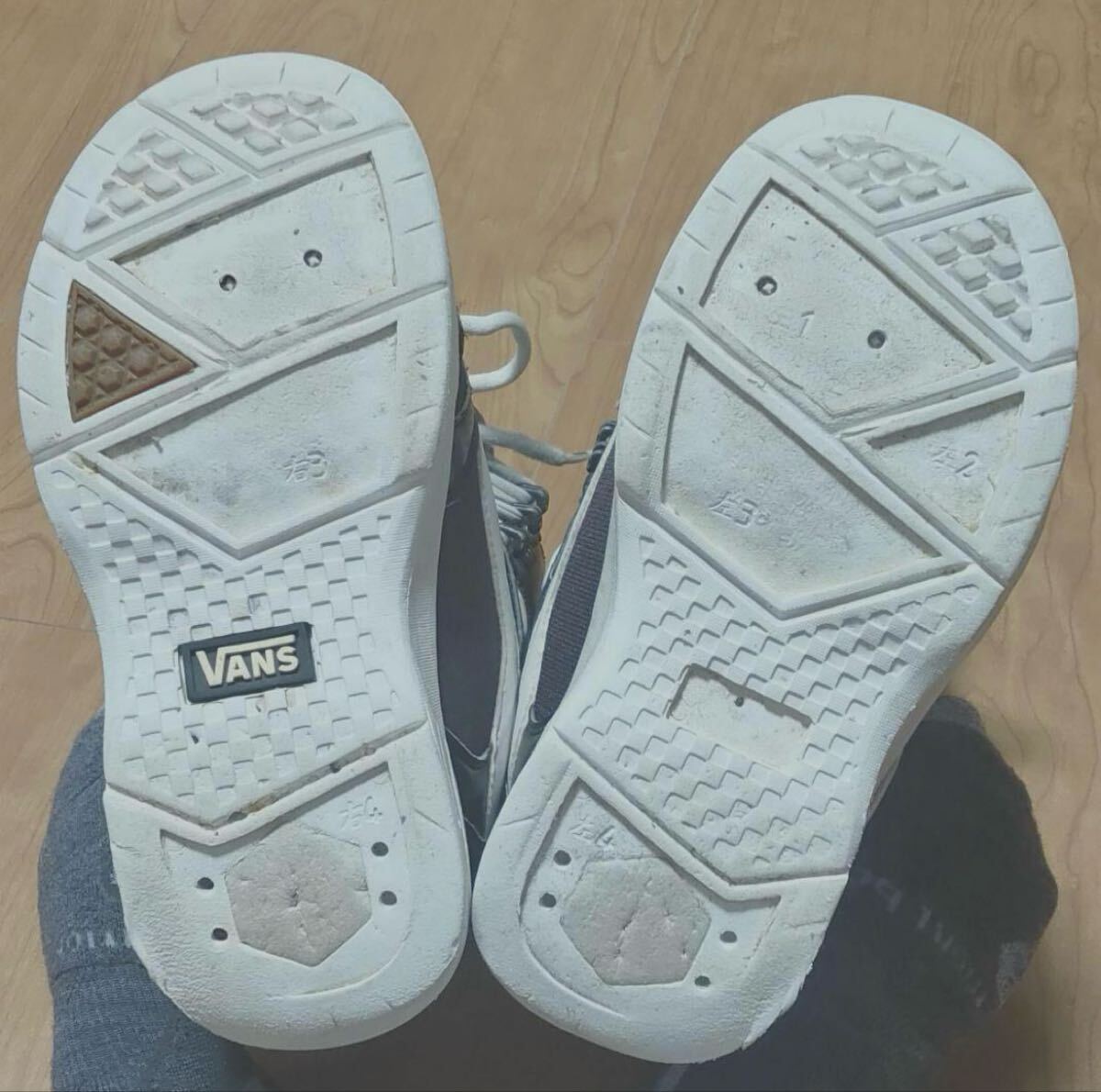 だいぶ前にオーストラリアで購入した物ですが、ソールのゴムが剥がれた部分に漢字で左右が書いてありました笑
