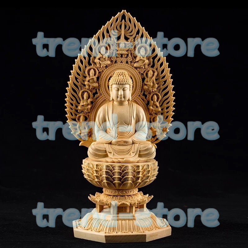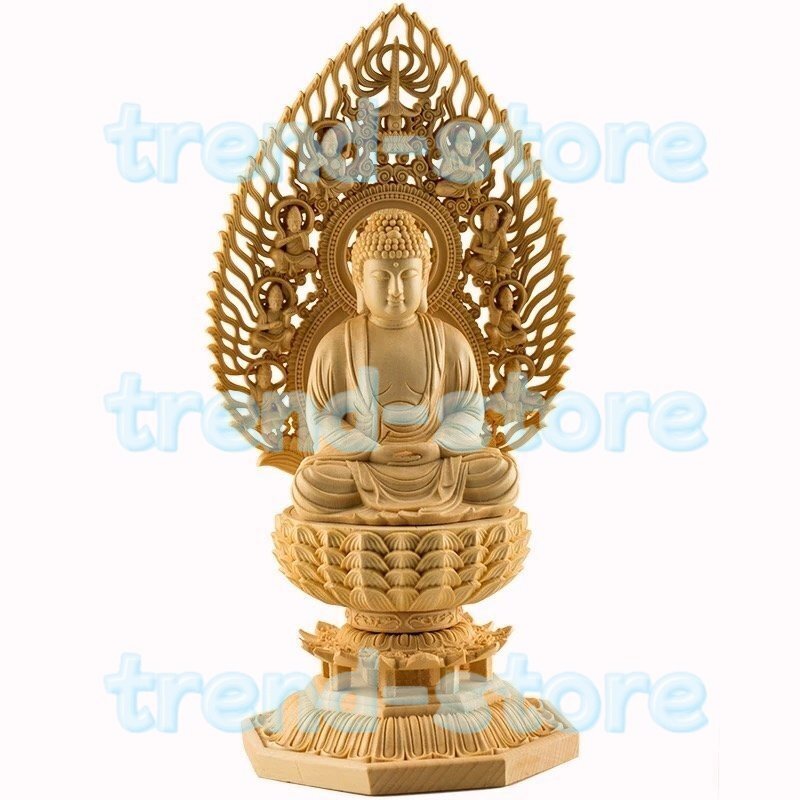 新入荷☆総檜材 仏教工芸品 高さ28cm木彫仏教 精密彫刻 阿弥陀如来座像