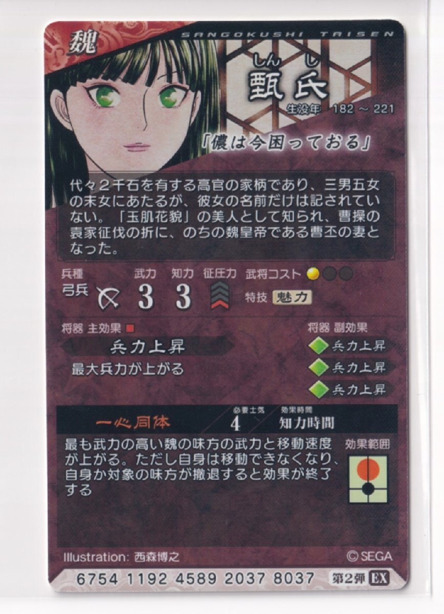 三国志大戦4 旧枠 魏 2弾 SR EX 甄氏 一心同体 兵力上昇 コレクション用 【3子09】