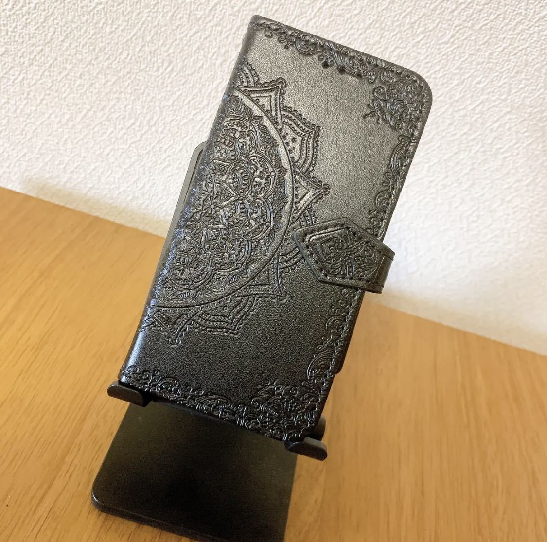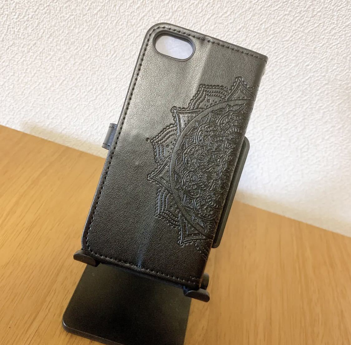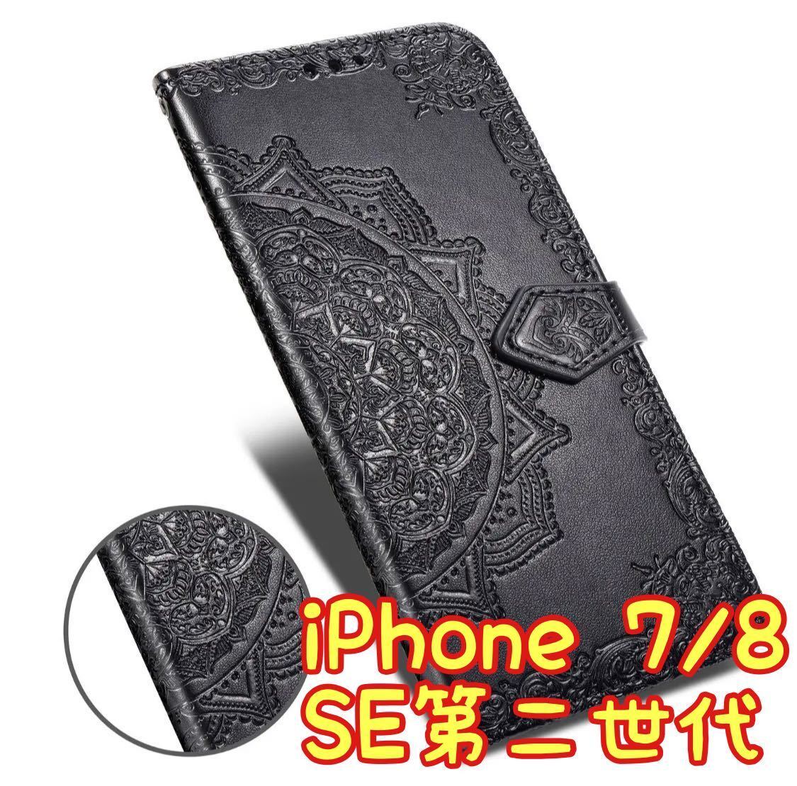 エンボス加工スマホケース 手帳型 iPhone SE2/SE3 ブラック
