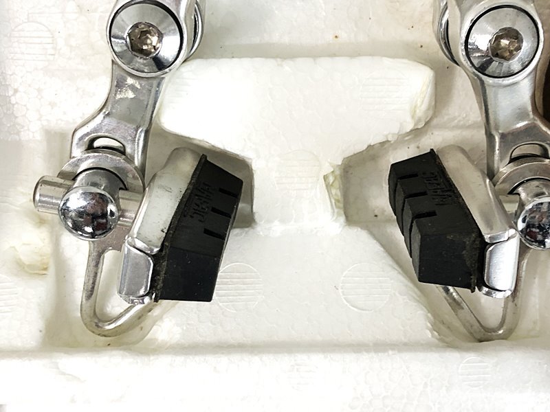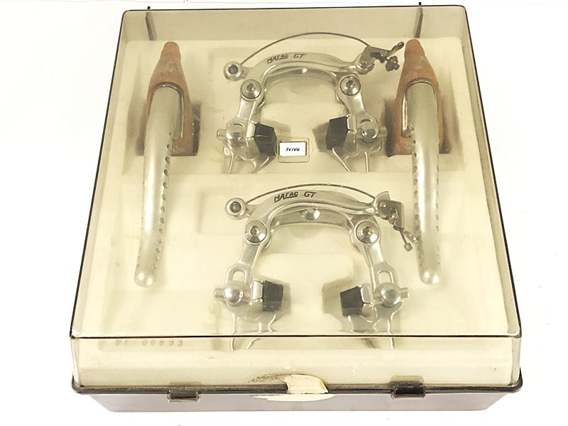 箱入りの未使用品です。細かいキズ、ブレーキシュー、ブラケットカバーの劣化、パッケージの変色、割れがございます。