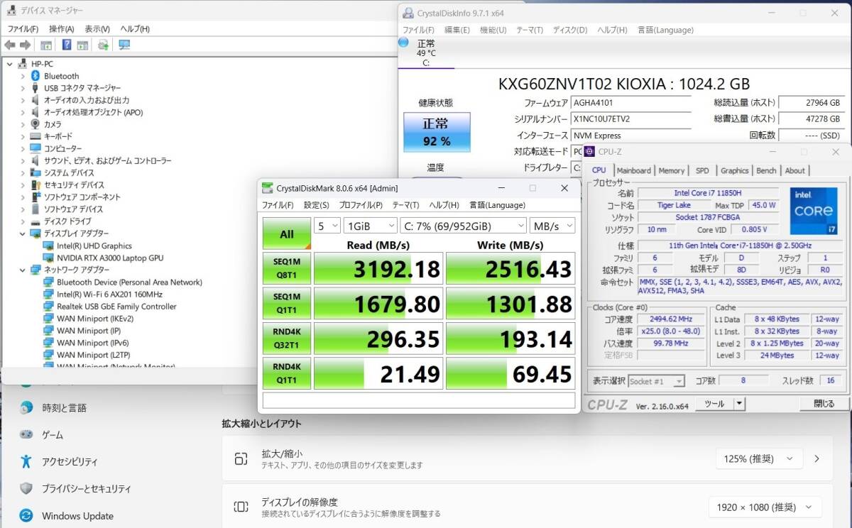 | CPU: 超高速 Intel 8コア 卓越性能 第11世代Core i7-11850H 2.5Ghz、 8コア16スレッド (ターボ・ブースト利用時の最大周波数 4.8GHz) |