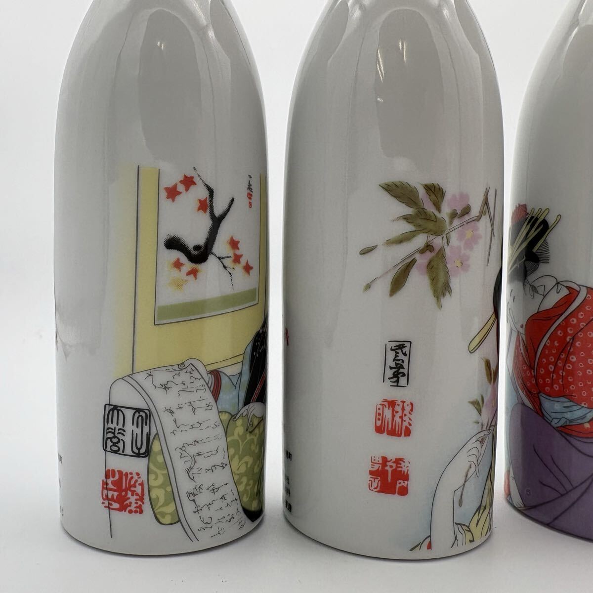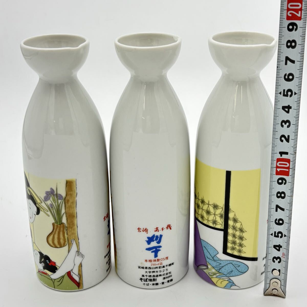 浮世絵 徳利 3本まとめて 宮崎 高千穂 刈干? 酒器 空容器 日本画 インテリア とっくり 美人画 着物姿 Japan 長期保管品 送料無料