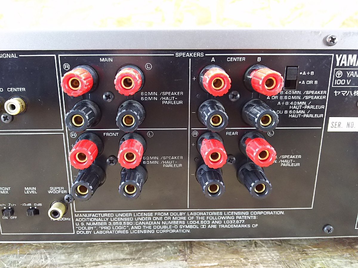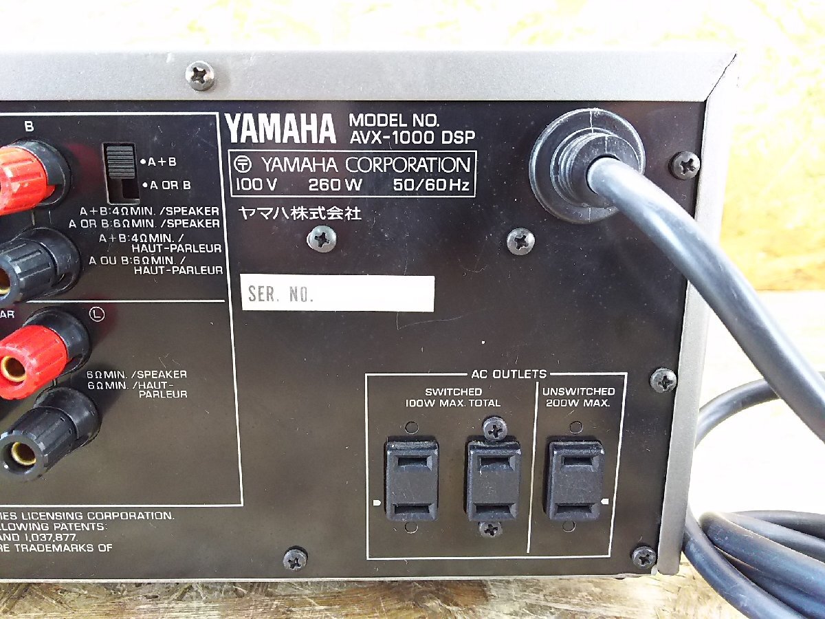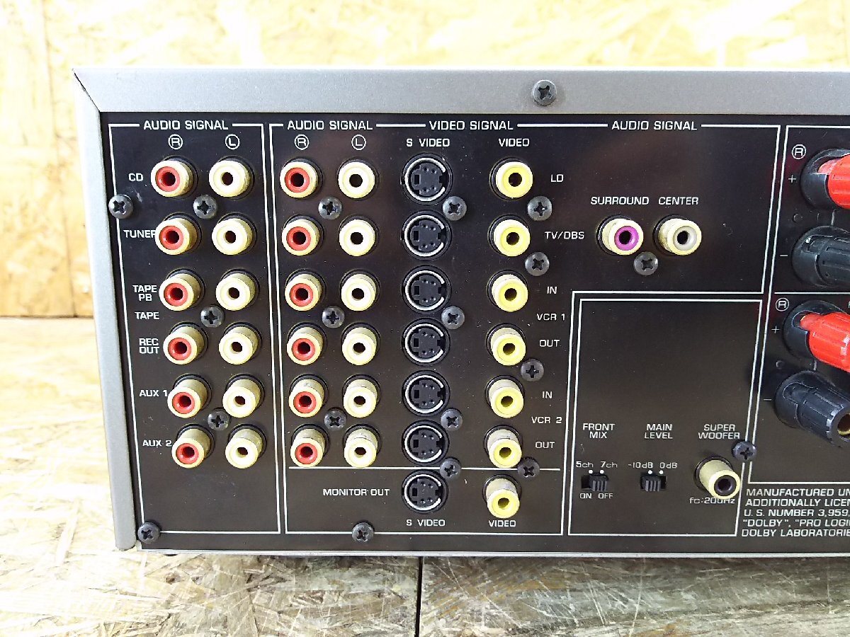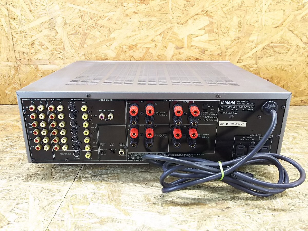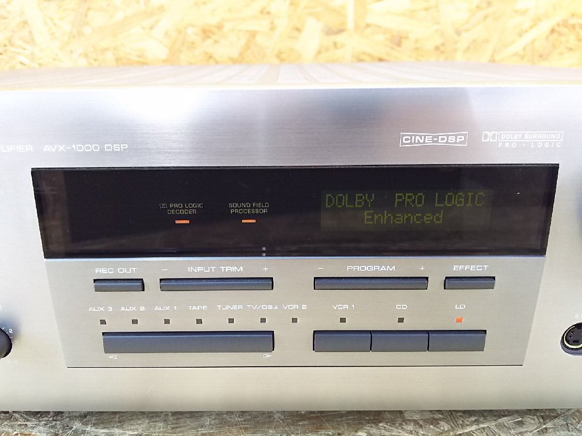 YAMAHA AVX-1000DSP NATURAL SOUND DSP/AV AMPLIFIER AVアンプ ーーーーーーーーーーーーーーーーーーーーーーーーーーーーーーーーーー ●メーカー:YAMAHA ●型 番:AVX-1000DSP ●品 名:NATURAL SOUND DSP/AV AMPLIFIER AVアンプ ーーーーーーーーーーーーーーーーーーーーーーーーーーーーーーーーーー ●電源が入り、映像、音声が出ること確認しました。 ●フロントパネルのボタンとLCDディスプレイは反応します。 (ボタンを押すとディスプレイの文字変わる) ●VOLUMEつまみ音量調節できました。 ●フロントパネルの両サイドカバー無くむき出しの状態です。 ●両サイド1本ずつネジが欠損しています。 ●専門的な商品のため、全ての動作を確認できておりません。 上記以外の動作確認は行っておりませんので、保証ができかねます。 使い方等アフターサービスも行えません。ご了承ください。 ◎付属品 本体のみ ◎外観 本商品は中古品です。経年・使用に伴う擦り傷/汚れがあります 外観等を著しく気になさる方や新品に近い美品をご希望の方はご遠慮ください ボリュームつまみに傷がございます。 ●詳しい仕様等、商品についてはメーカーサイトなどをご参照ください ※保証期間内であっても,水没・落下などお客様が原因で起こった不具合は保証対象外です ※ハードウェア、ソフトウェアに関するサポートは行ってません